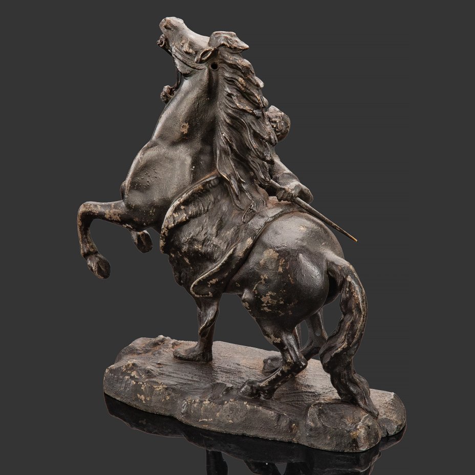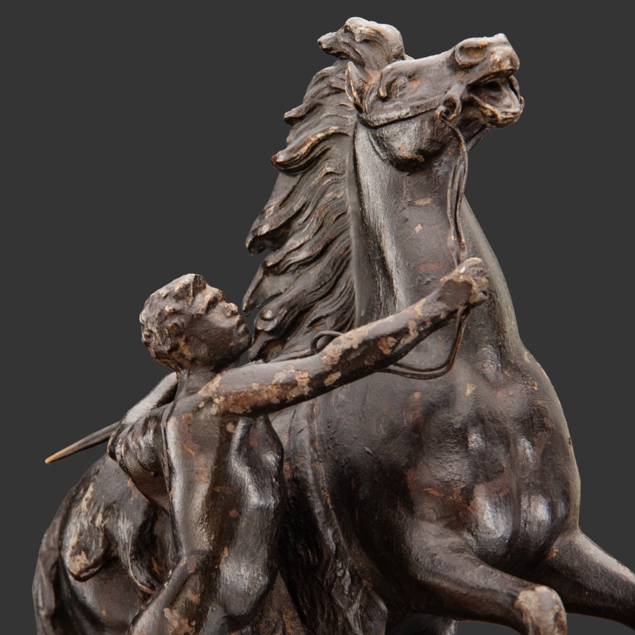 Статуэтка "Юноша, усмиряющий коня" по модели скульптурной группы "Кони Марли" скульптора Гийома Кусту, металл, крашение, Франция, 1960-1980 гг.