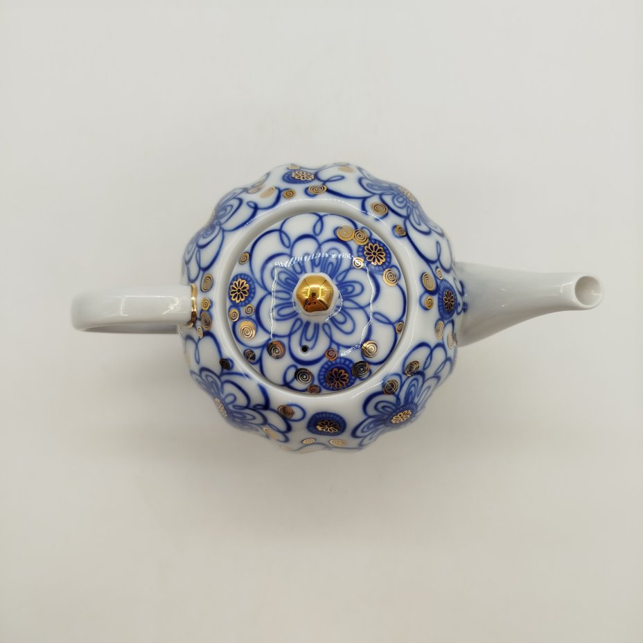 Чайник заварочный с орнаментальным декором, фарфор, крытье кобальтом, золочение, Ленинградский фарфоровый завод (ЛФЗ), СССР, 1970-1992 гг.