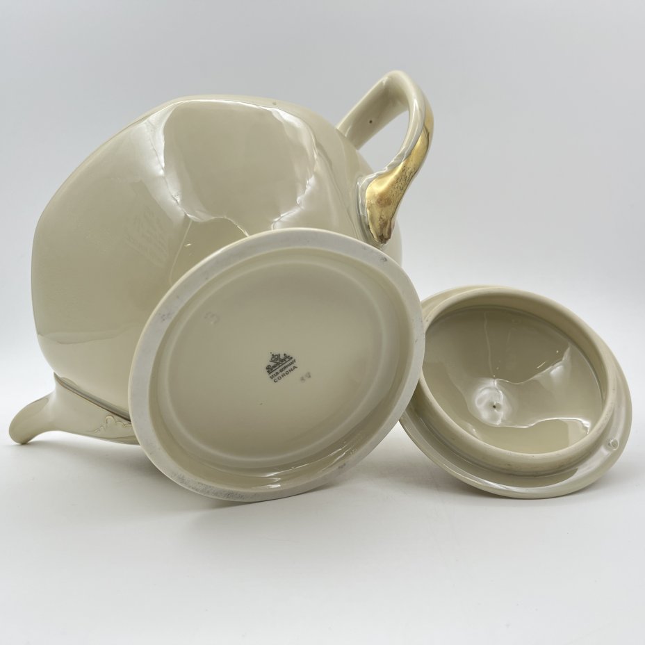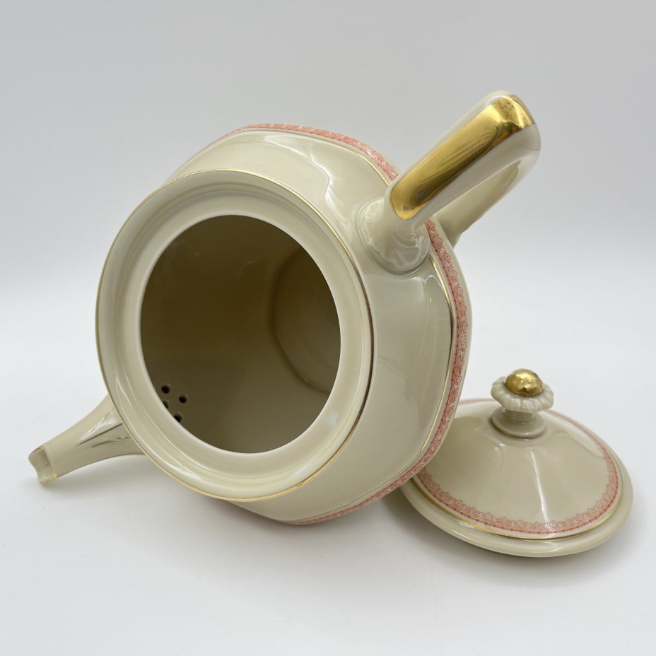 Чайник заварочный со стилизованным растительным декором, фарфор, люстр, золочение, Кисловодская фабрика сувениров, СССР, 1970-1980 гг.