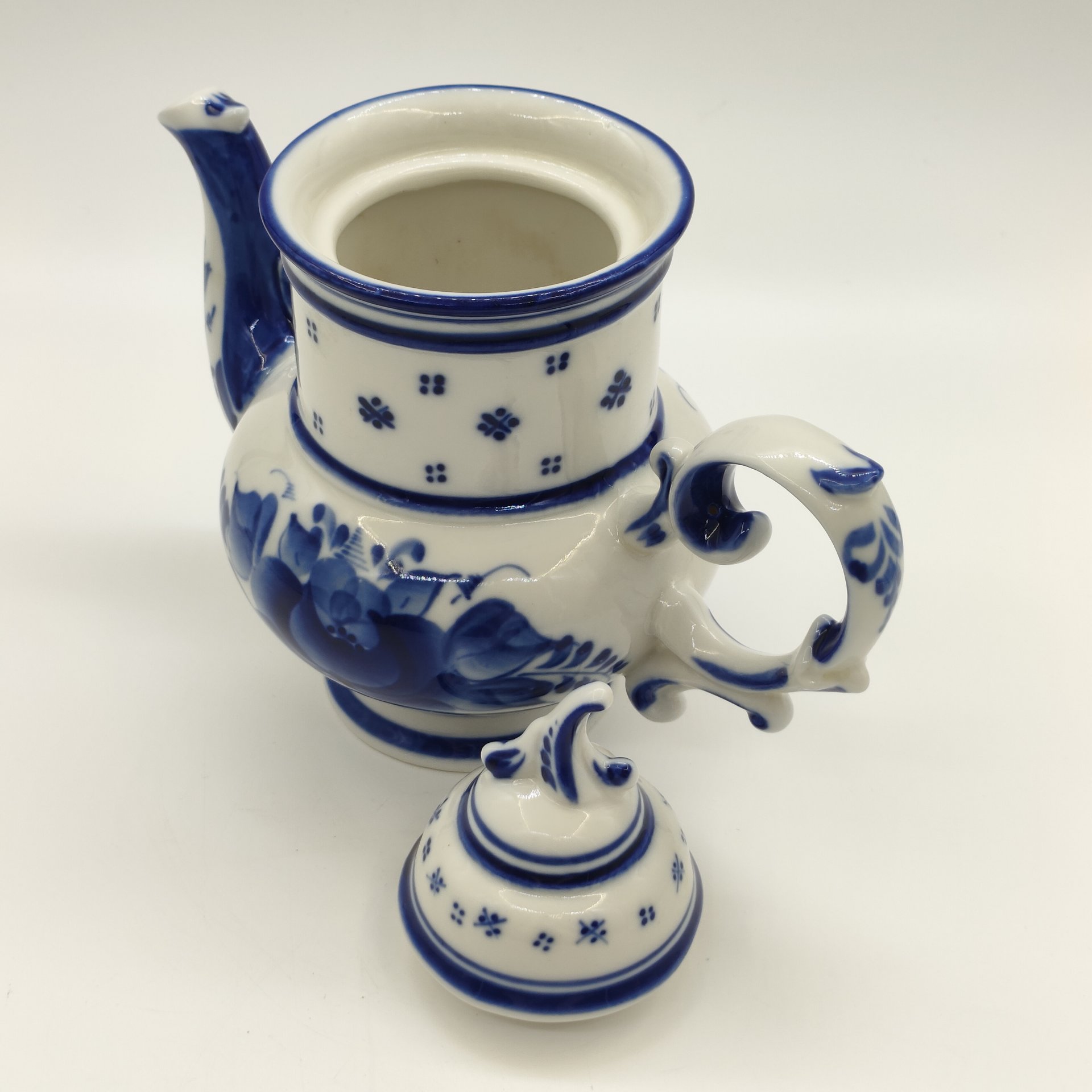 Чайник заварочный с расписным цветочным декором, фарфор, роспись, Объединение «Гжель», СССР, 1972-1985 гг.