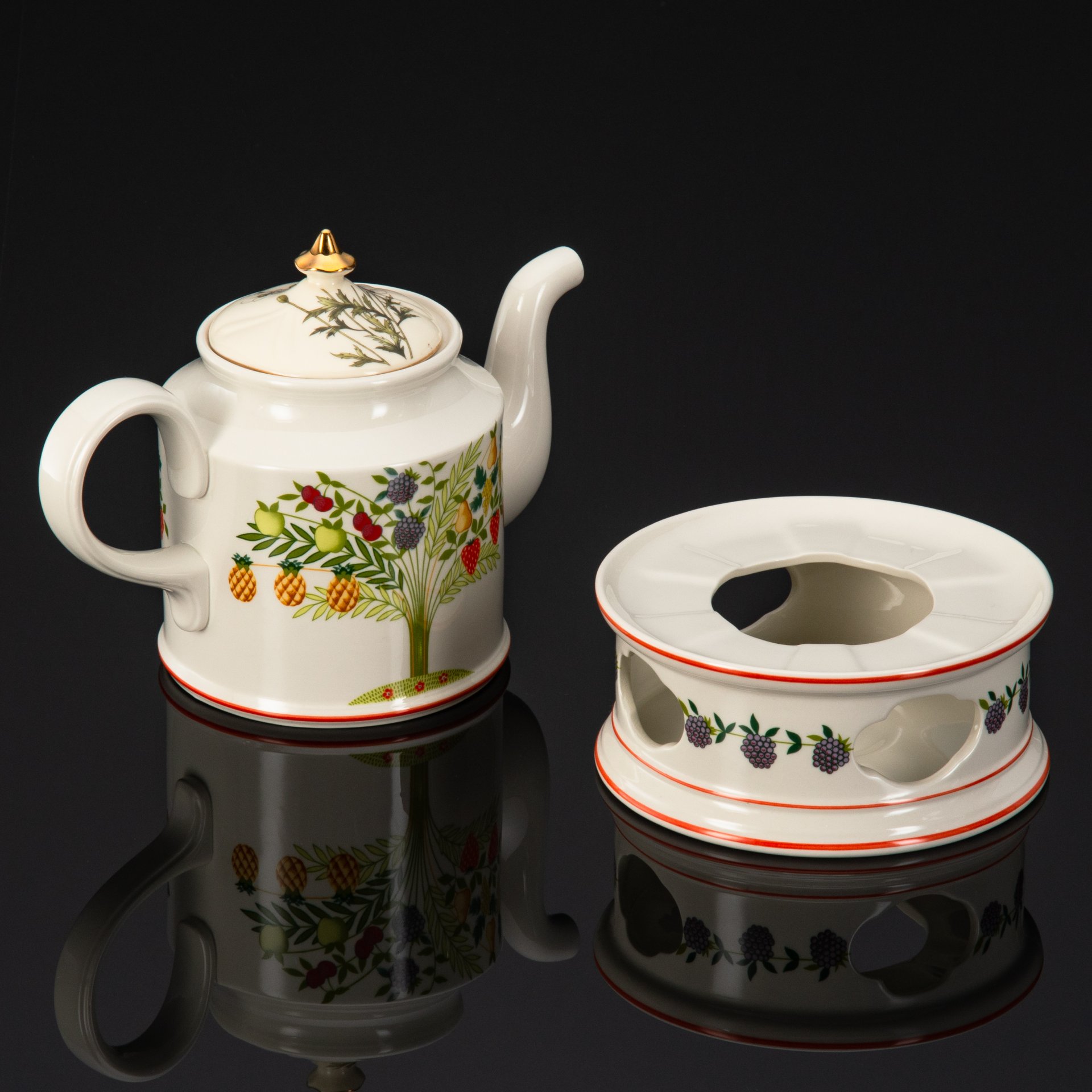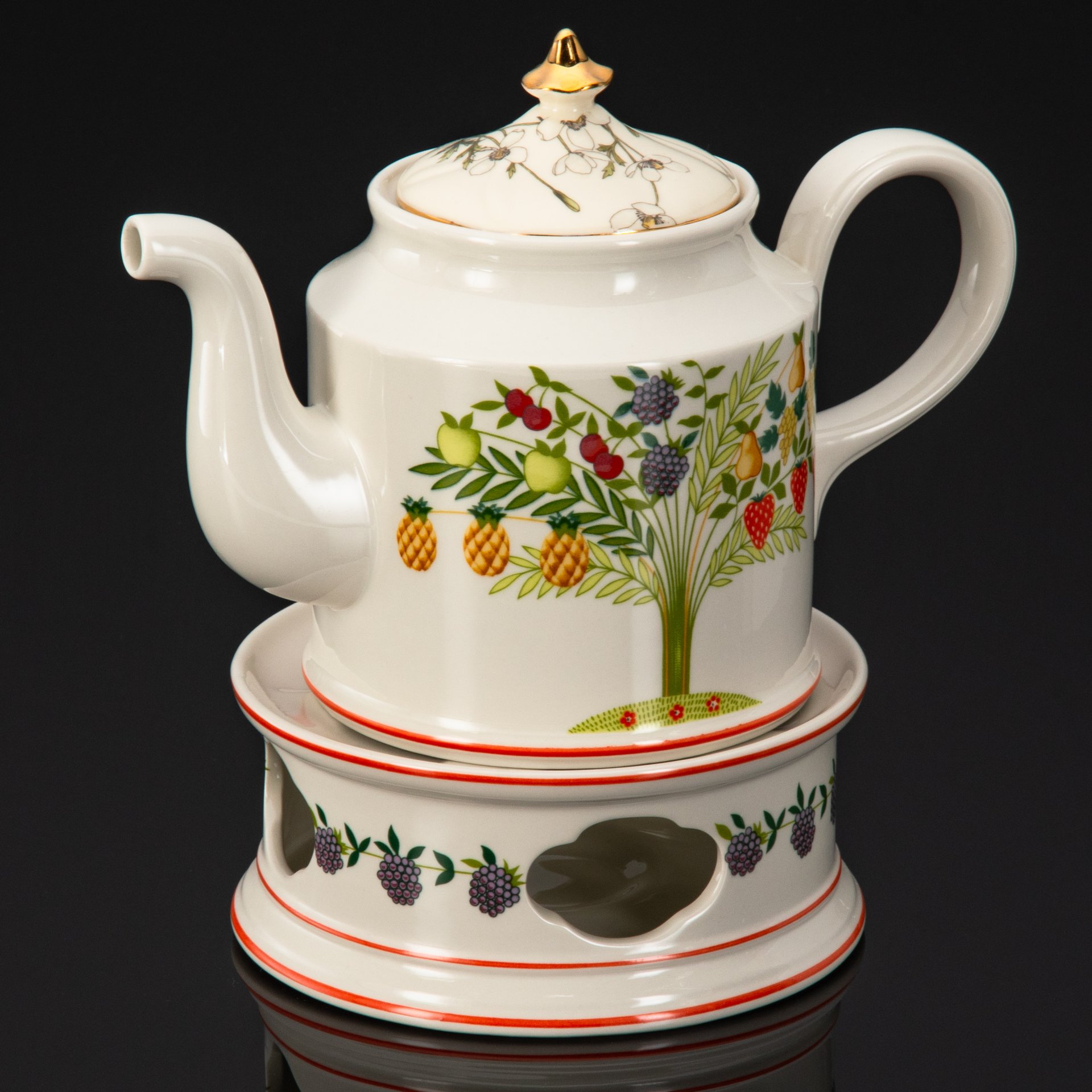 Чайник заварочный, украшенный рельефными изображениями ягод и фруктов, Vincent Cadeaux SA, фаянс, роспись, Франция, 1980-2000 гг.