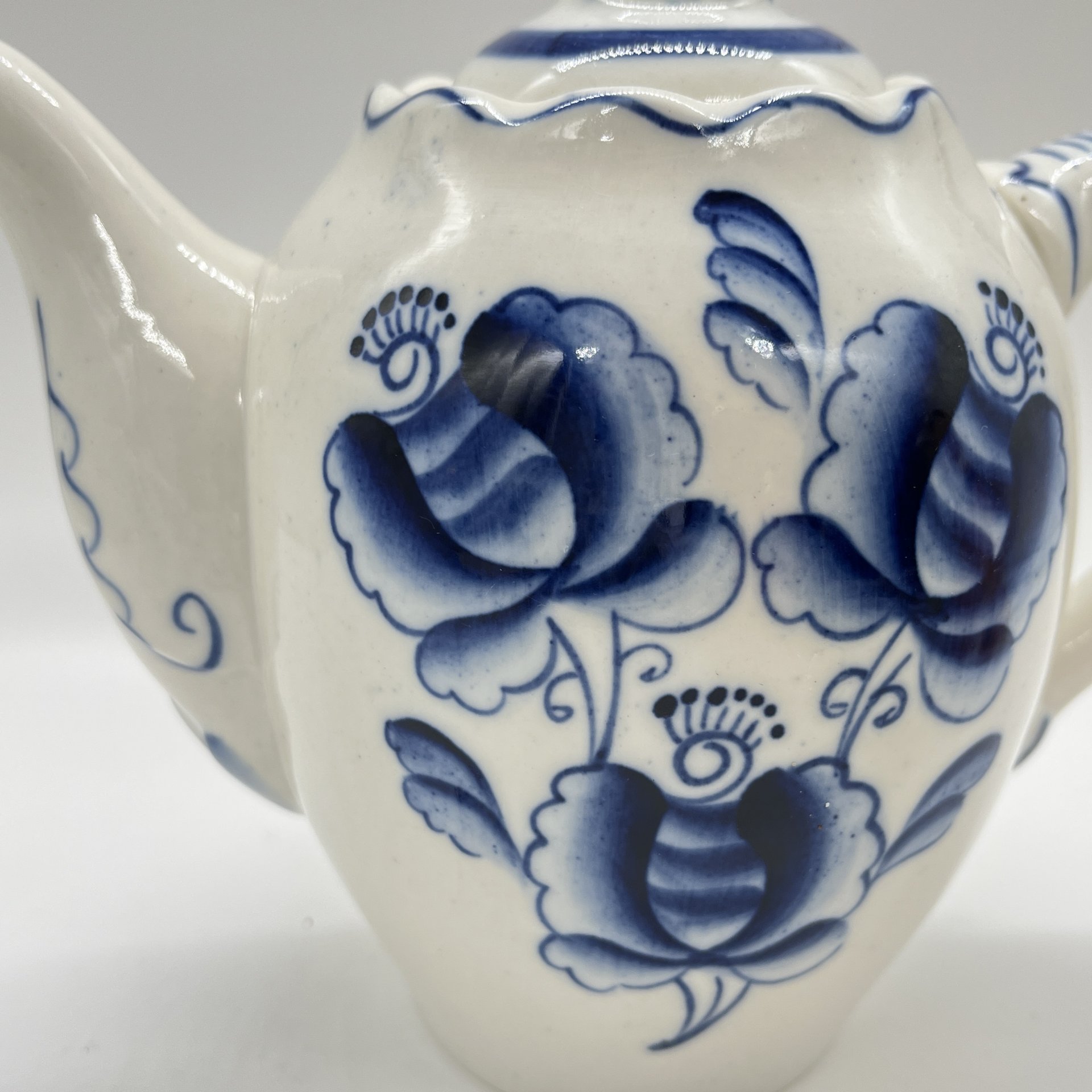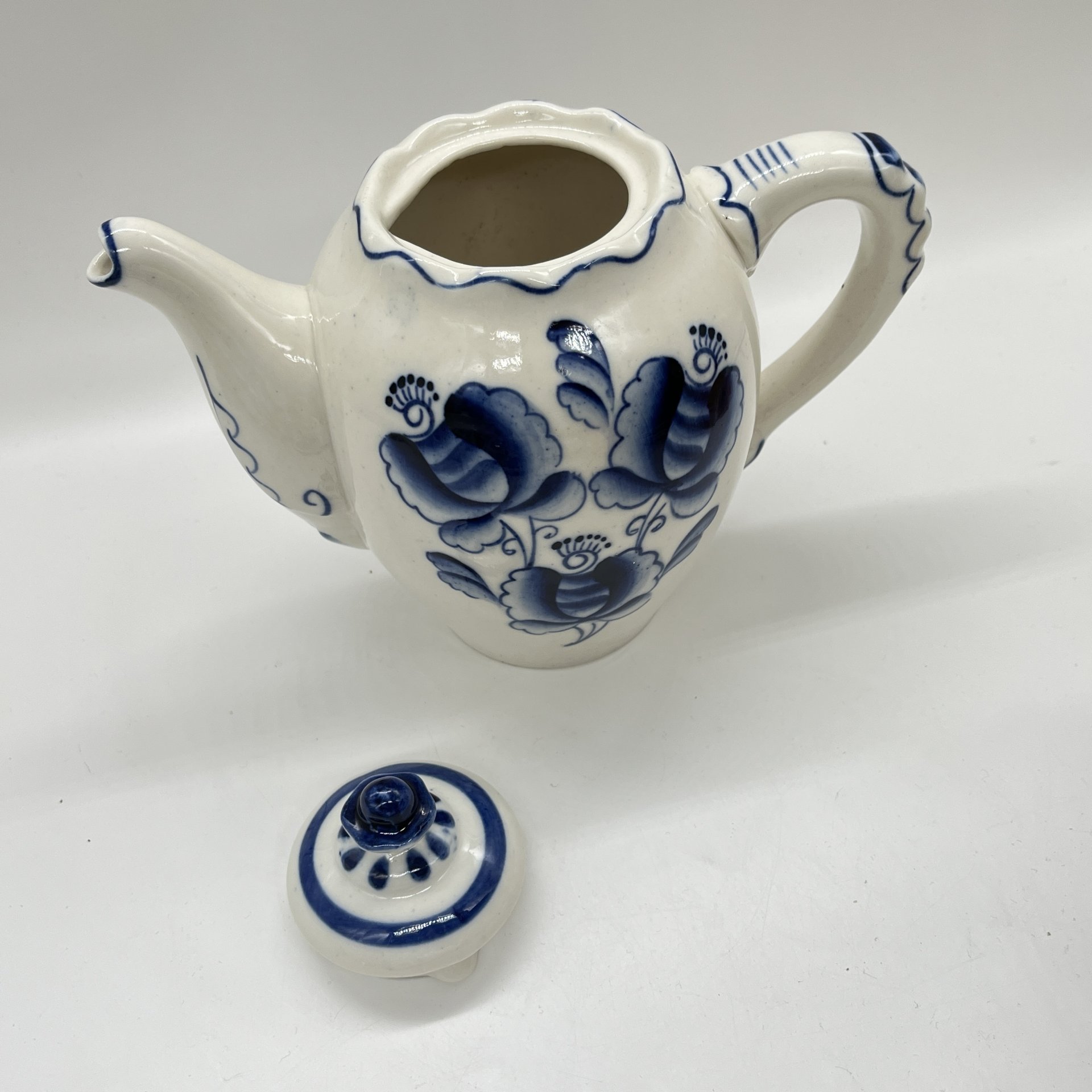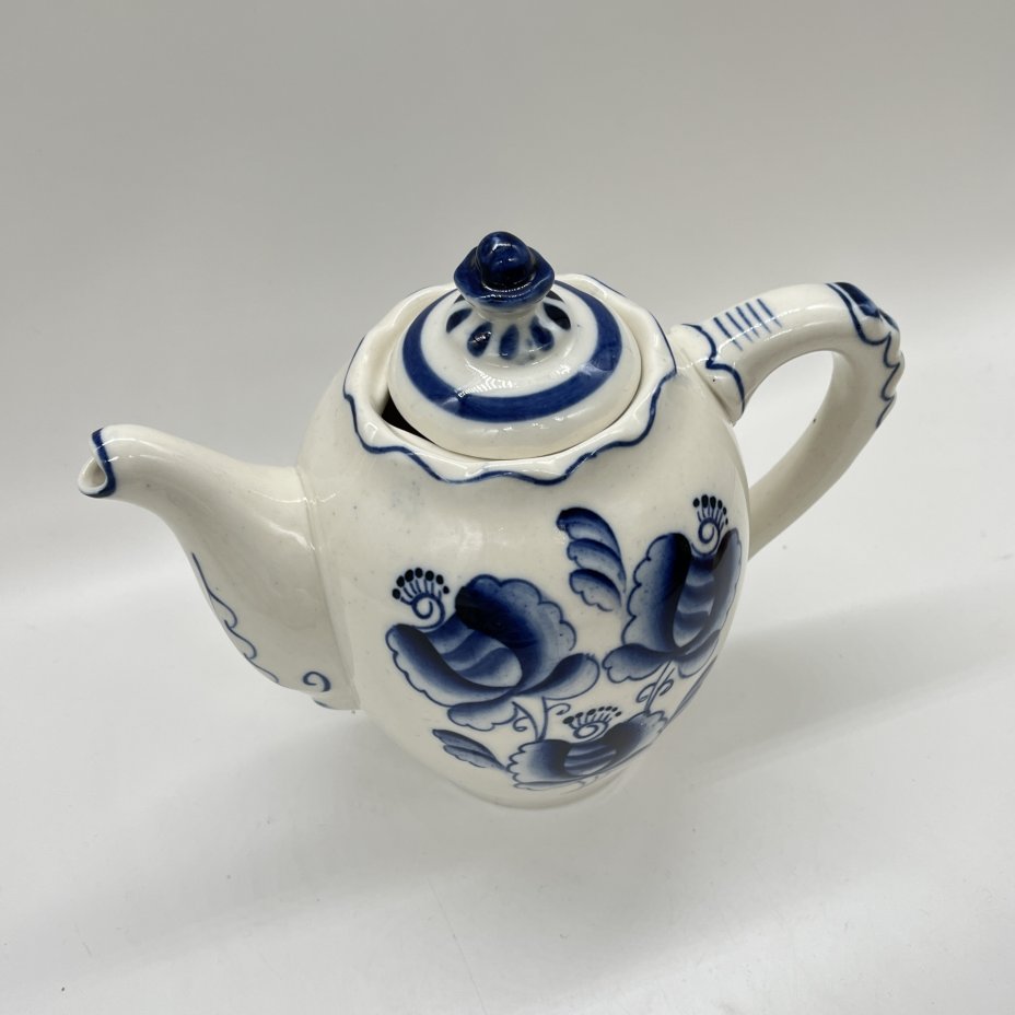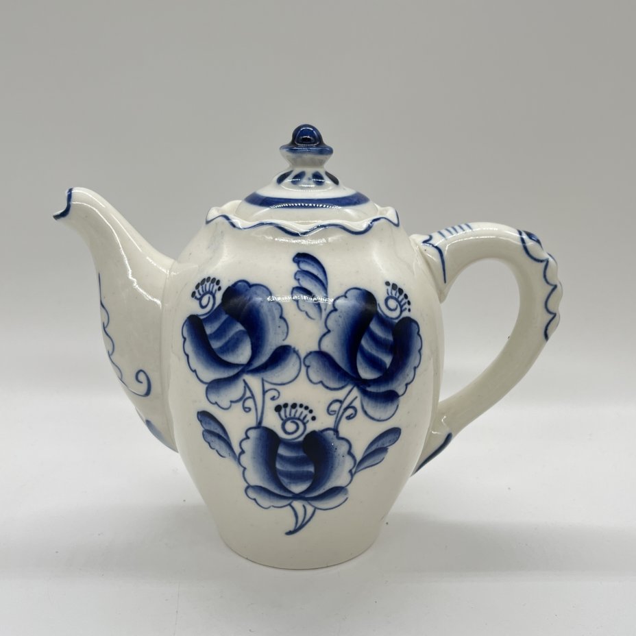 Чайник заварочный, украшенный цветочным декором, фарфор, роспись, Объединение «Гжель», СССР, 1972-1985 гг.