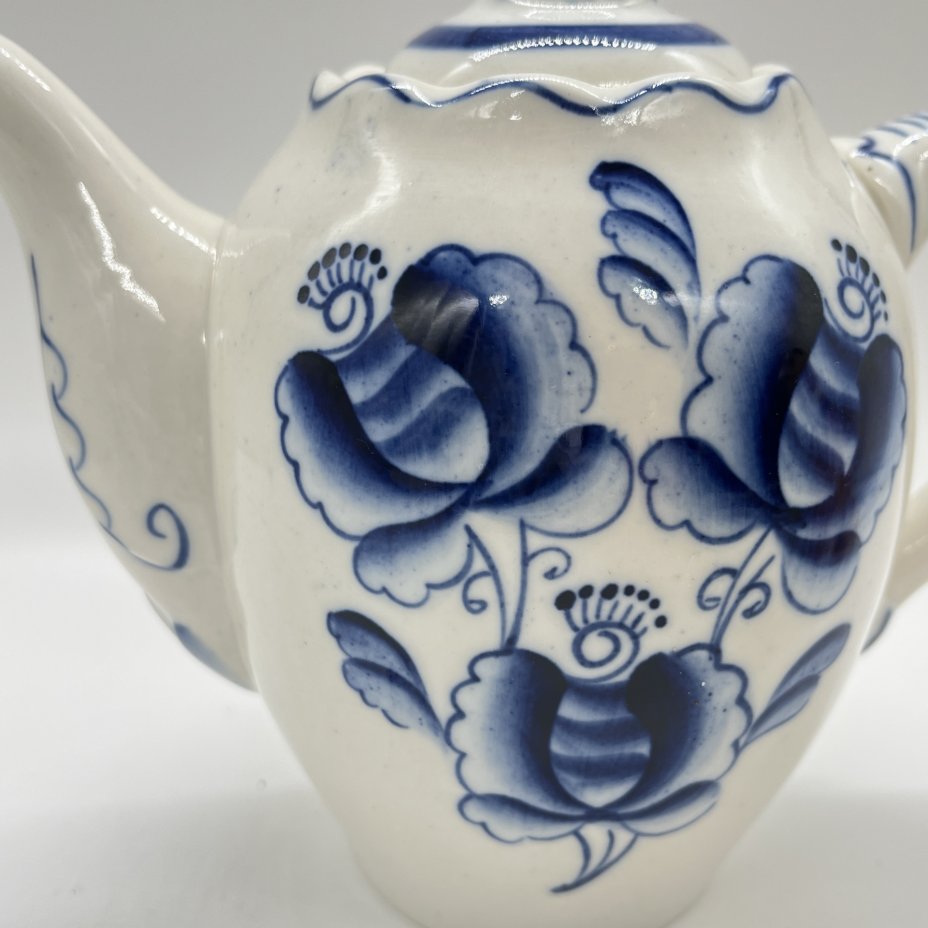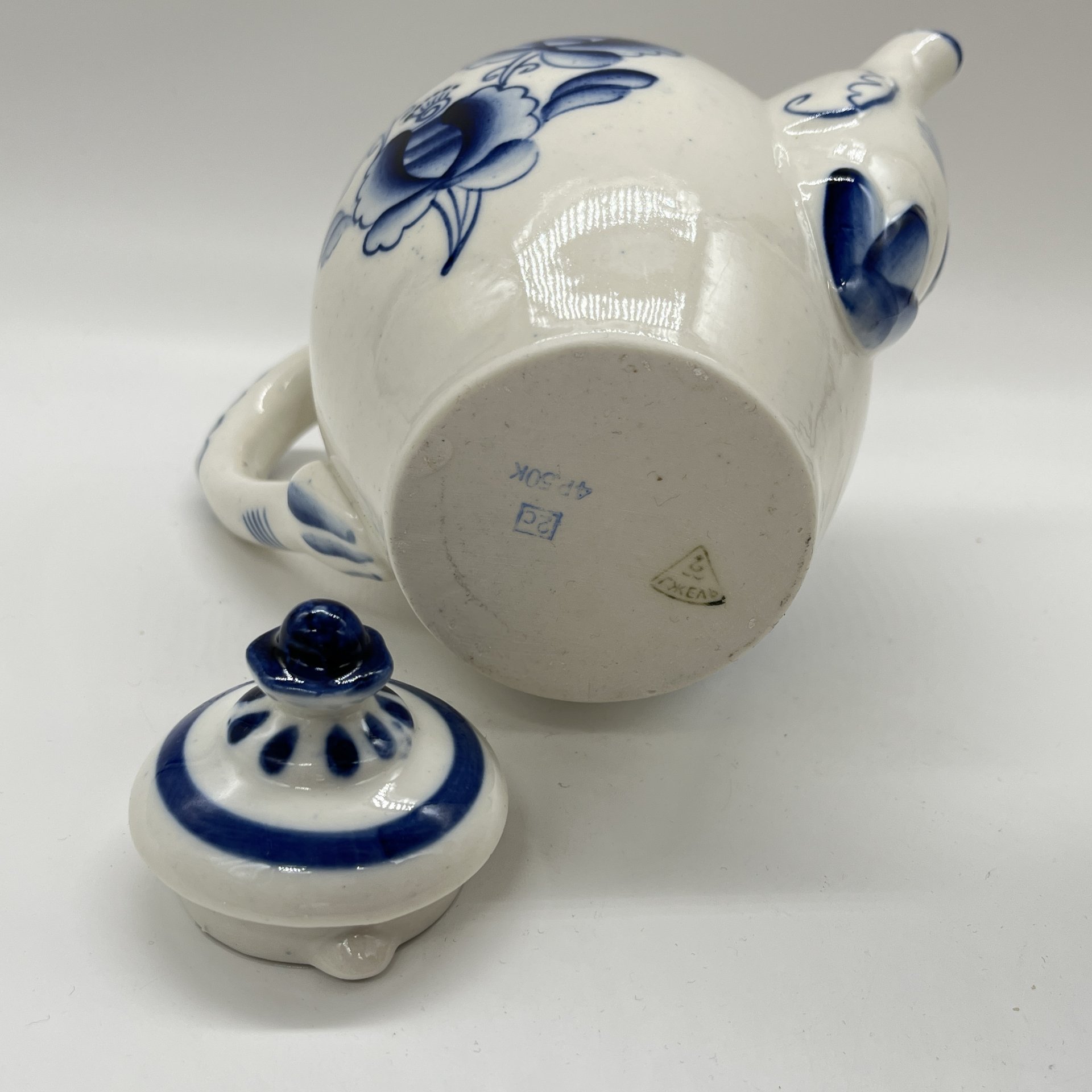 Чайник с объемным декором в виде цветка, фарфор, роспись, Объединение «Гжель», СССР, 1972-1986 гг.