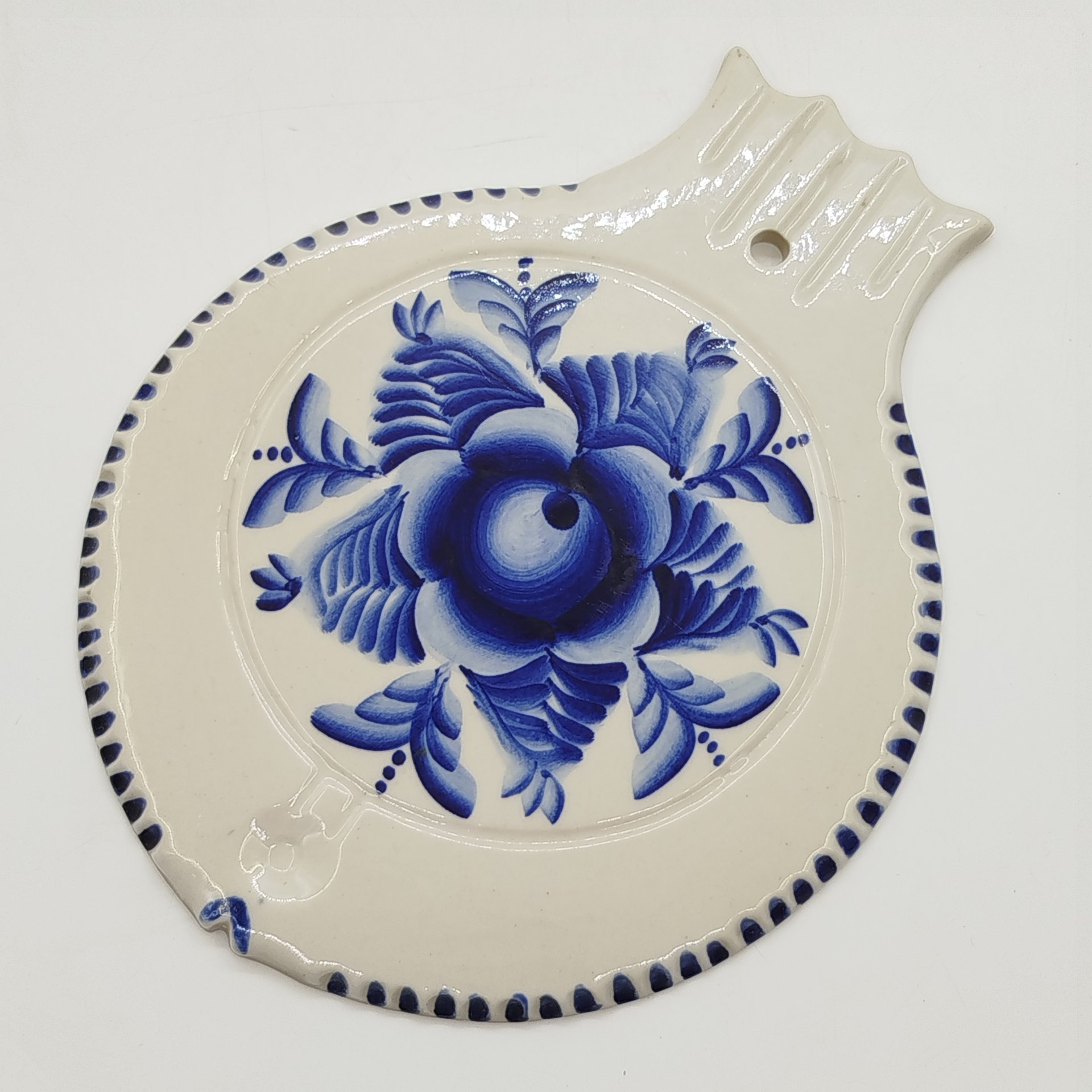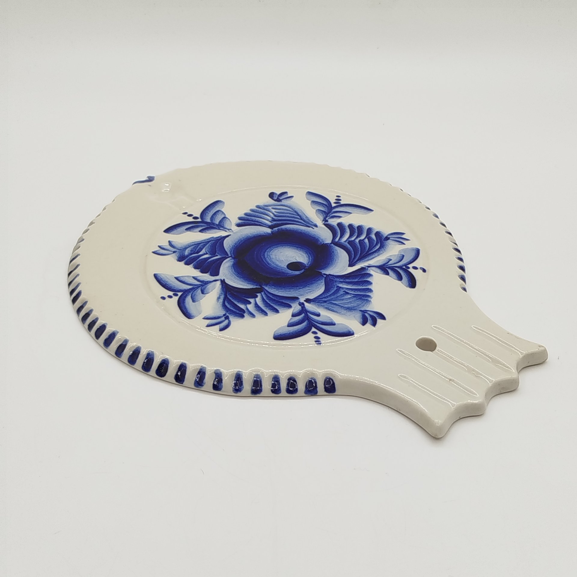 Сырная доска, украшенная изображениями цветов, фарфор, роспись, Речицкий фарфоровый завод (Гжель), СССР, 1970-1980 гг.