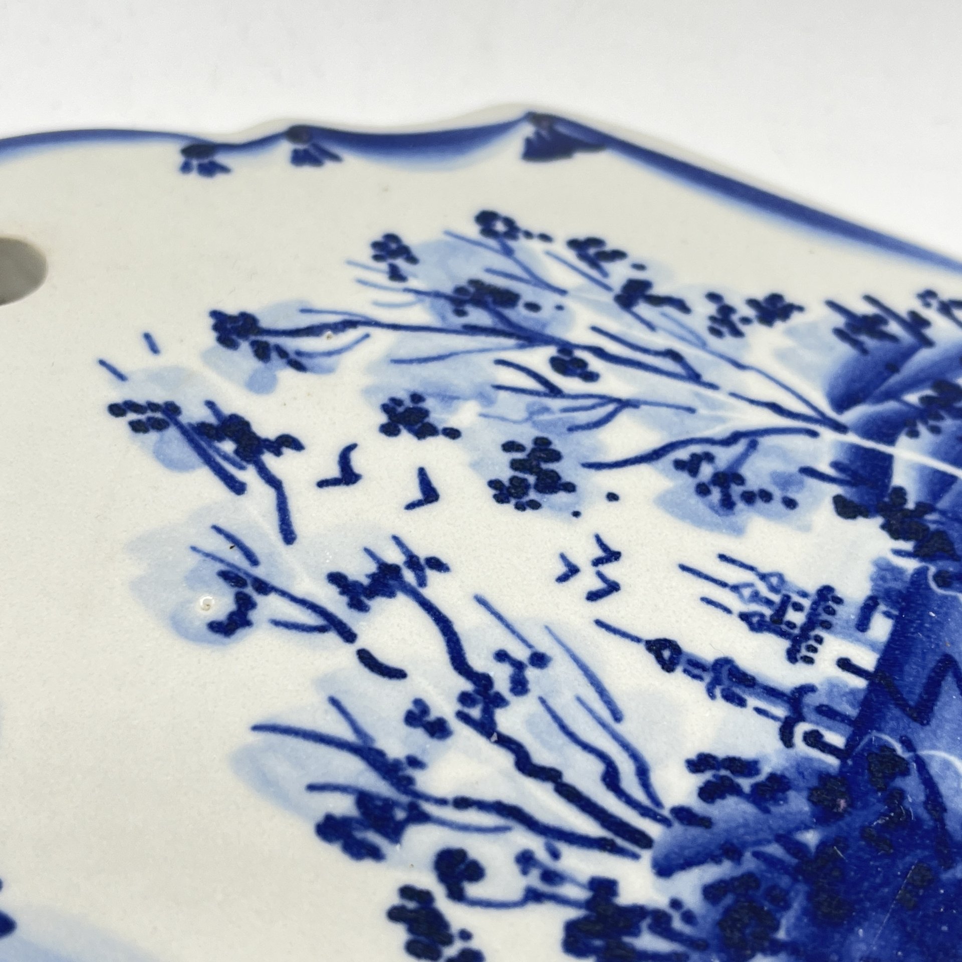 Доска сырная с цветочным орнаментом вдоль борта, фарфор, деколь, фабрика Гарднера в Москве, Российская империя, 1870-1910 гг.