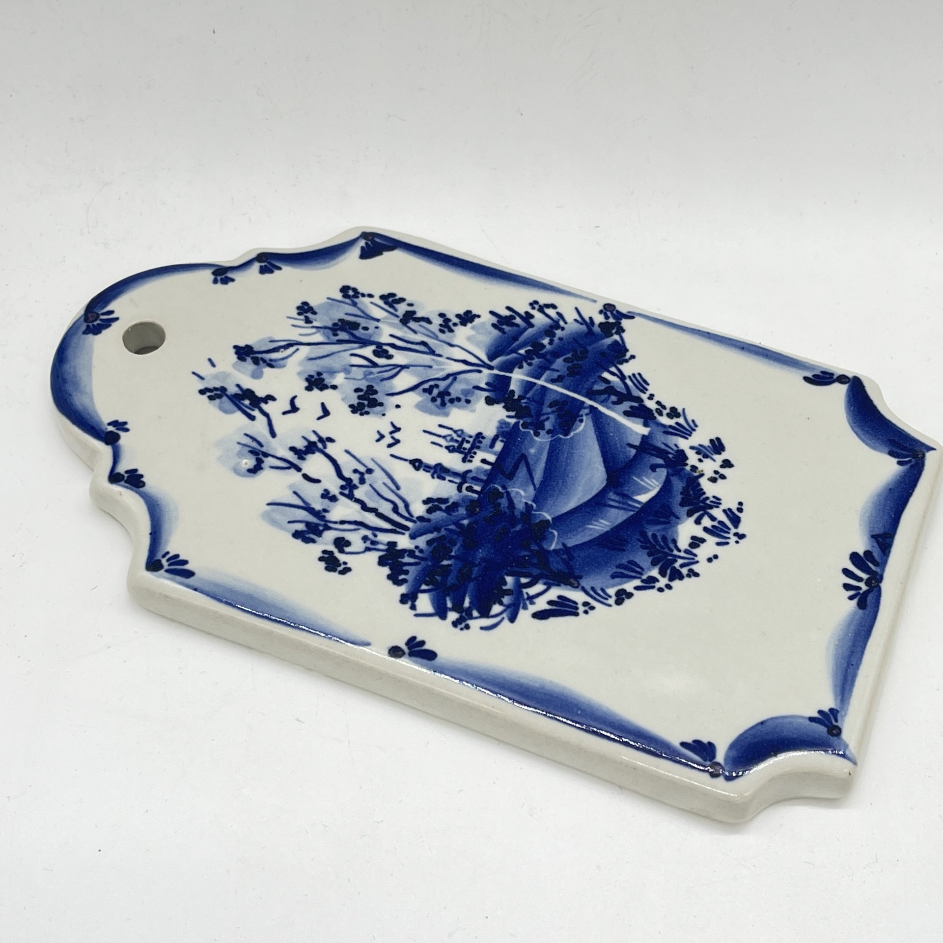 Сырная доска, украшенная изображениями цветов, фарфор, роспись, Речицкий фарфоровый завод (Гжель), СССР, 1970-1980 гг.
