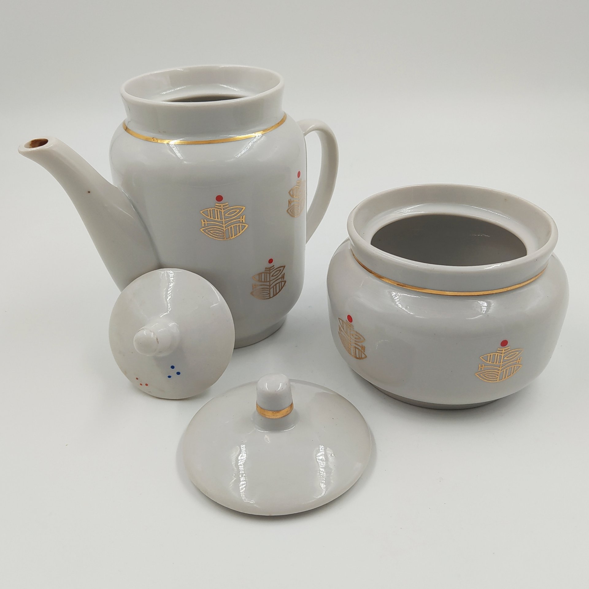 Кофейник лаконичной формы с геометрическим орнаментом, фарфор, деколь, Colditz (Кольдиц), ГДР, 1960-1990 гг.