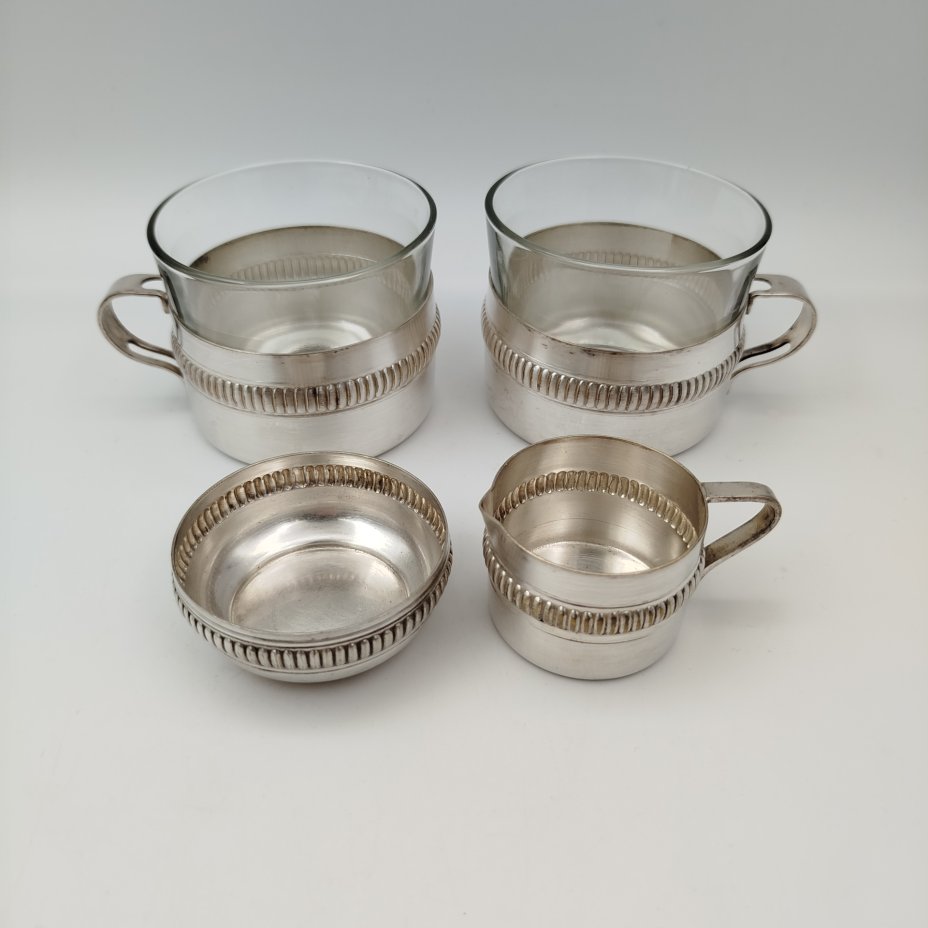 Набор на 2 персоны, для заваривания кофе, металл, серебрение, стекло, Франция, 1930-1960 гг.