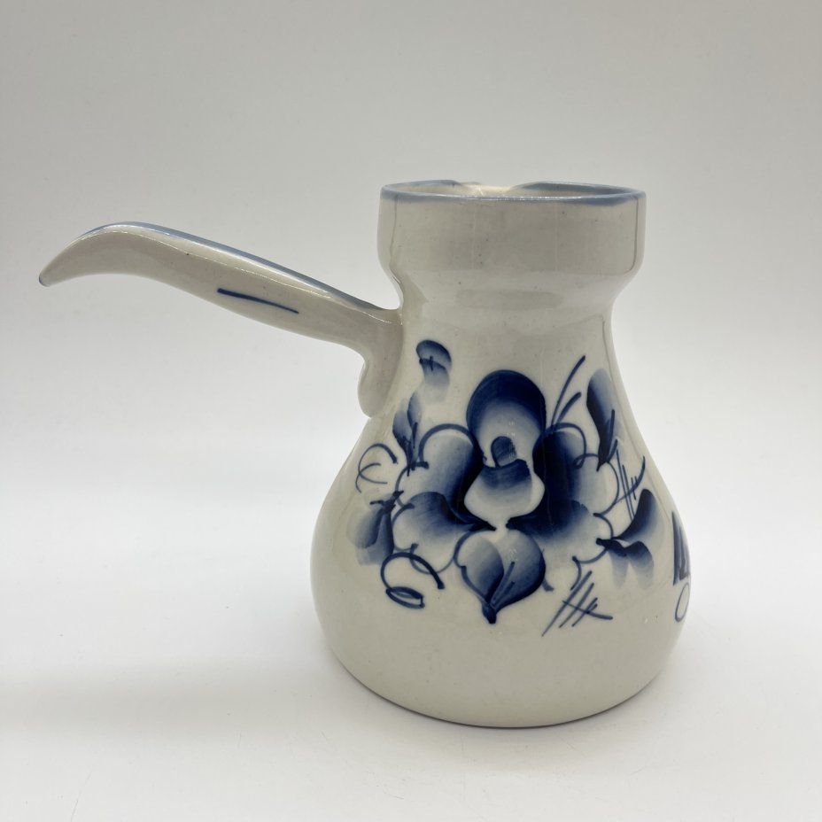 Миниатюрная турка с цветочным орнаментом, Гжель, фарфор, роспись, Россия, 1980-2000 гг.