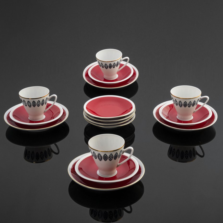 Кофейный набор на 4 персоны (16 предметов), фарфор, крытье, деколь, золочение, Freiberger Porzellan, ГДР, 1970-1980 гг.