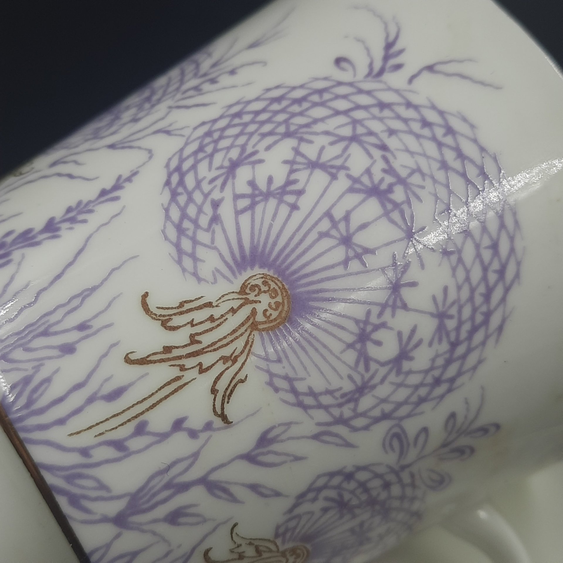 Сервиз кофейный с цветочным декором в пурпурной гамме на 6 персон (15 предметов), фарфор, деколь, золочение, Colditz (Кольдиц), ГДР, 1960-1990 гг.