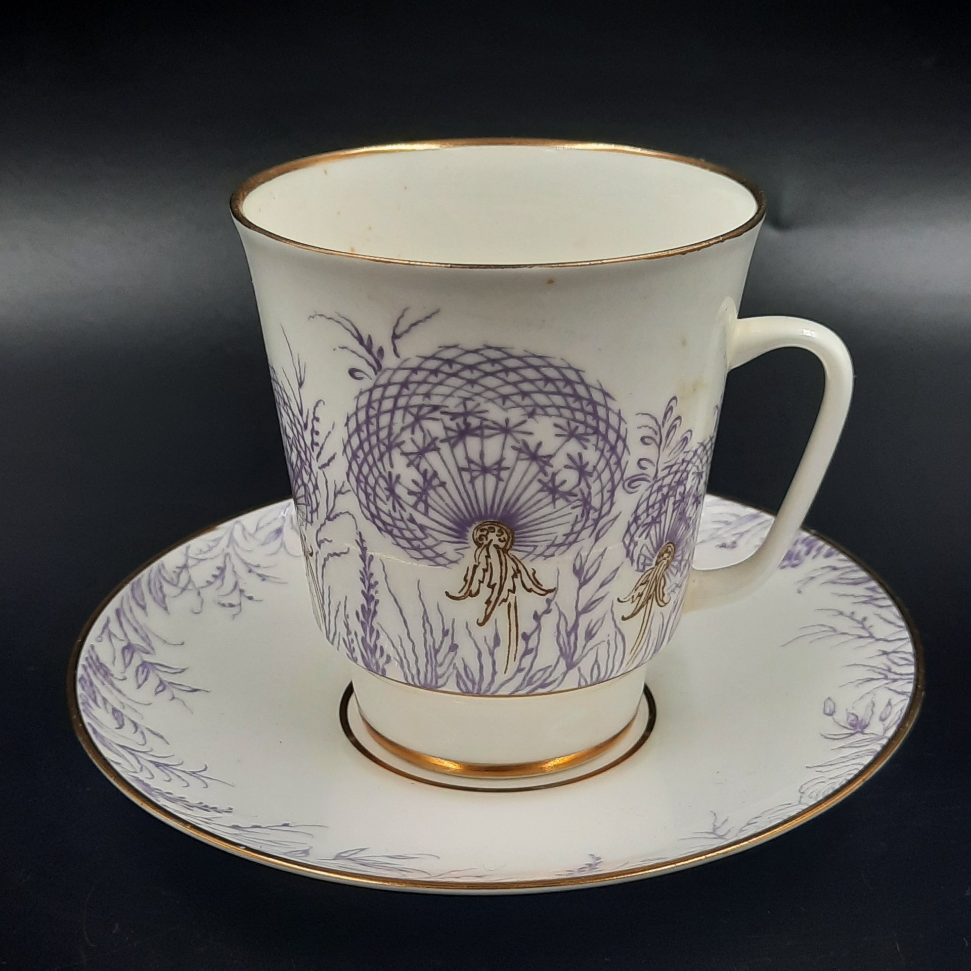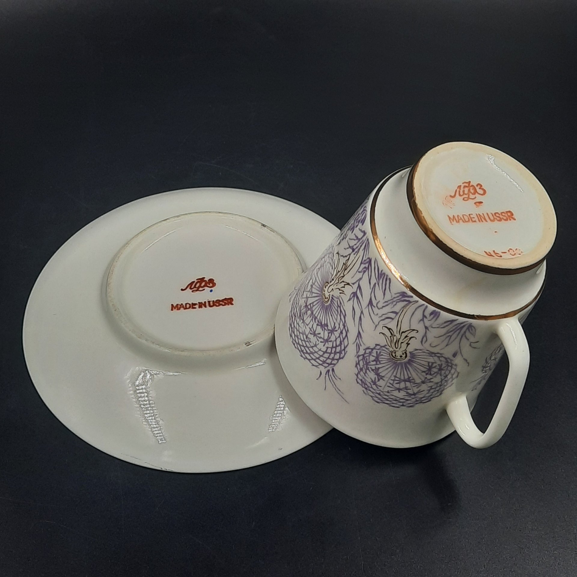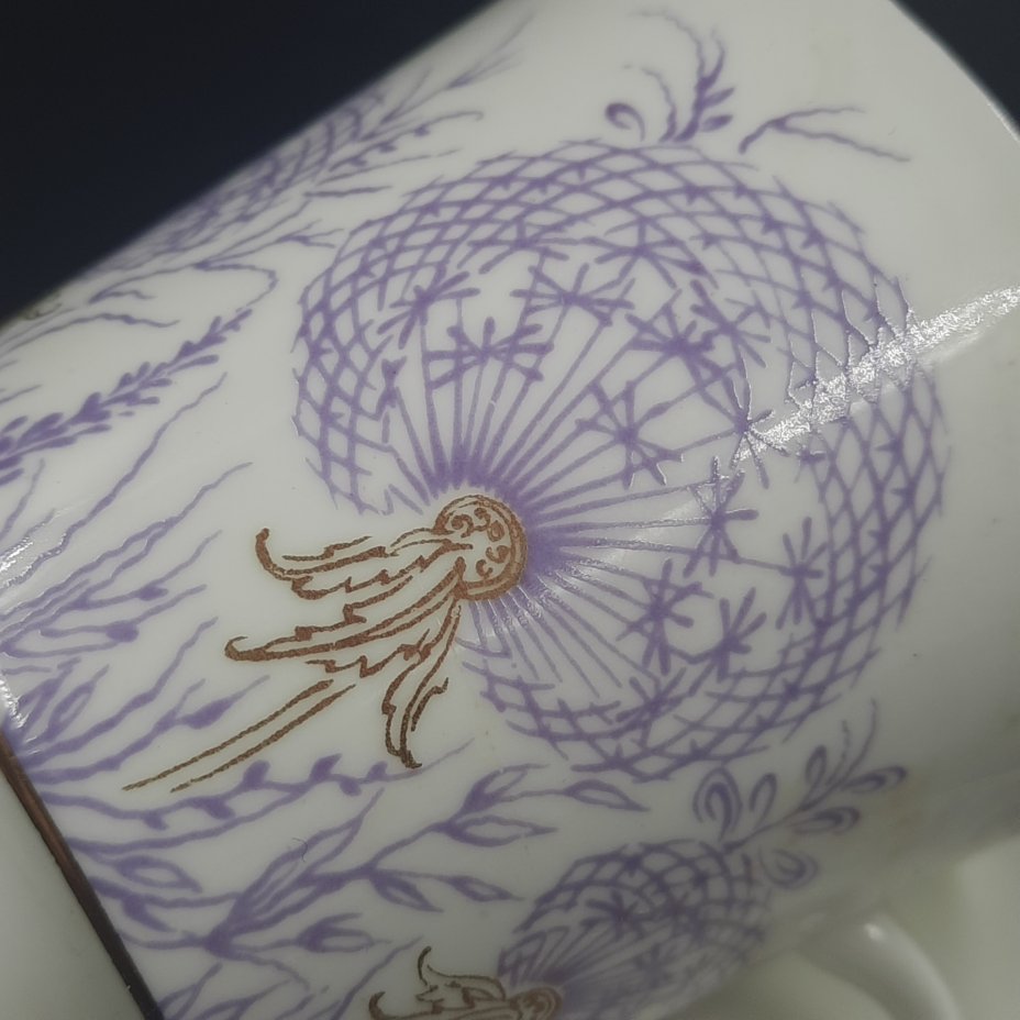 Пара кофейная "У ручья" (форма "Витая"), фарфор, деколь, Ленинградский фарфоровый завод (ЛФЗ), СССР, 1970-1992 гг.