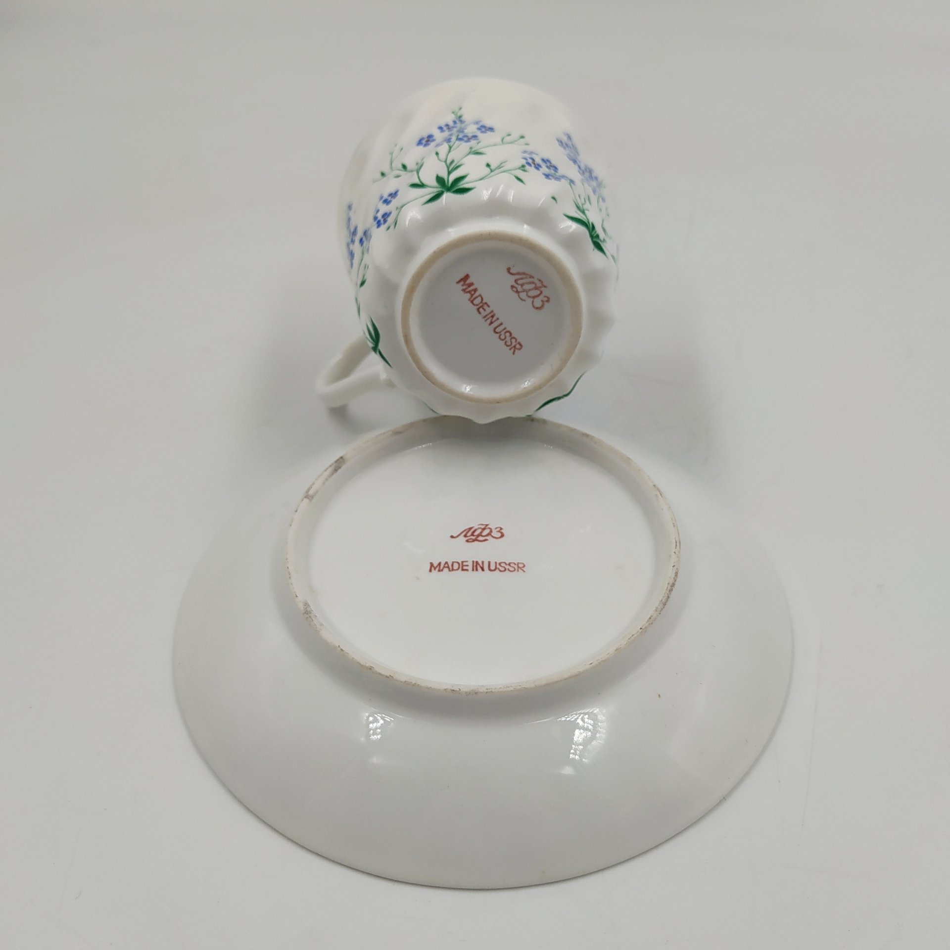 Пара кофейная "У ручья" (форма "Витая"), фарфор, деколь, Ленинградский фарфоровый завод (ЛФЗ), СССР, 1970-1992 гг.