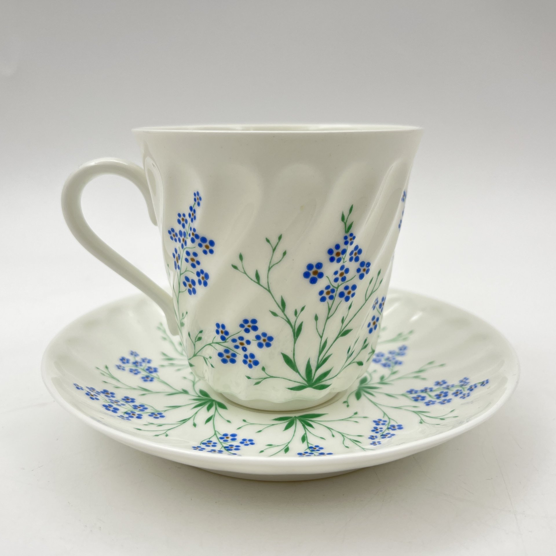 Пара чайная "Синие цветы", фарфор, деколь, золочение, Ленинградский фарфоровый завод (ЛФЗ), СССР, 1970-1986 гг.