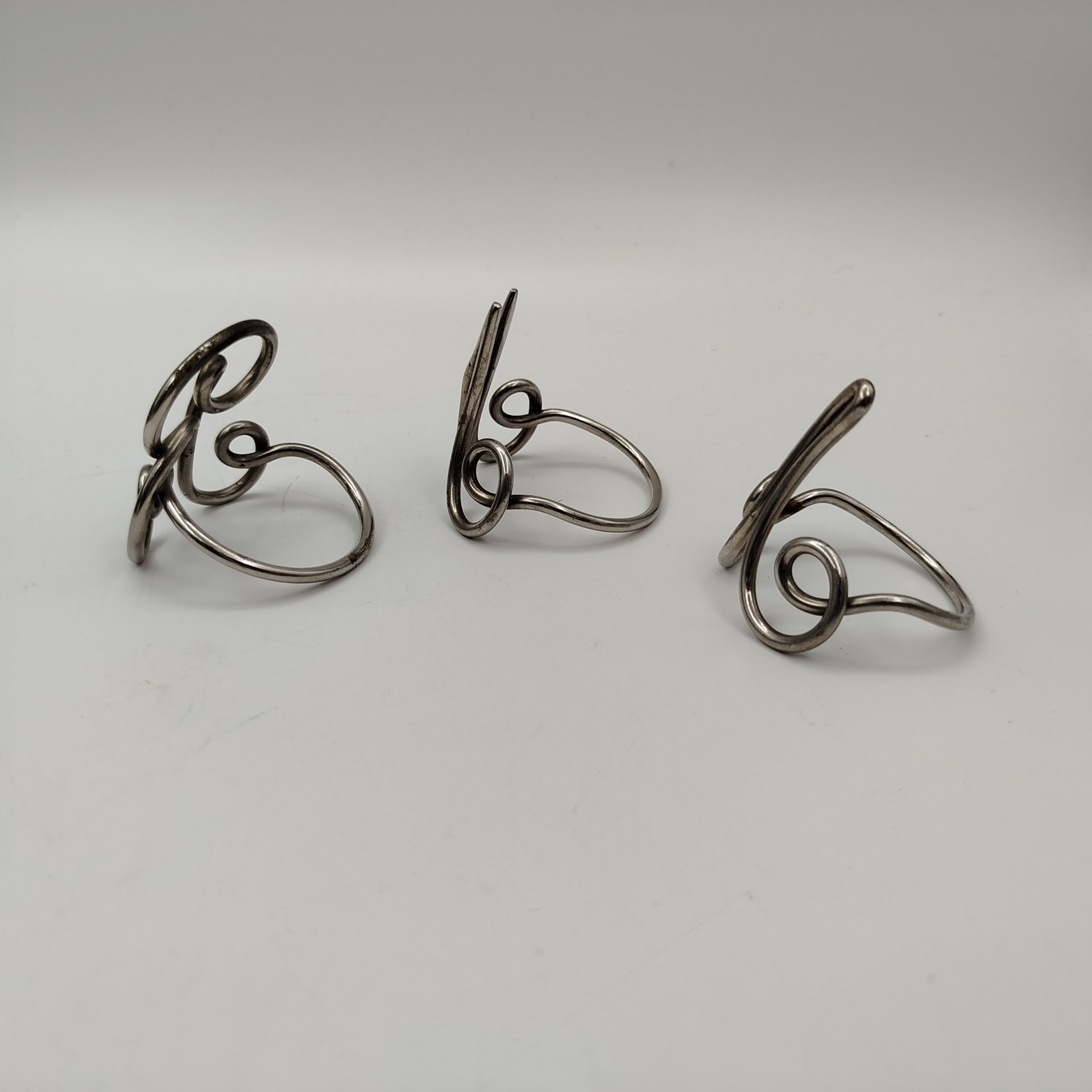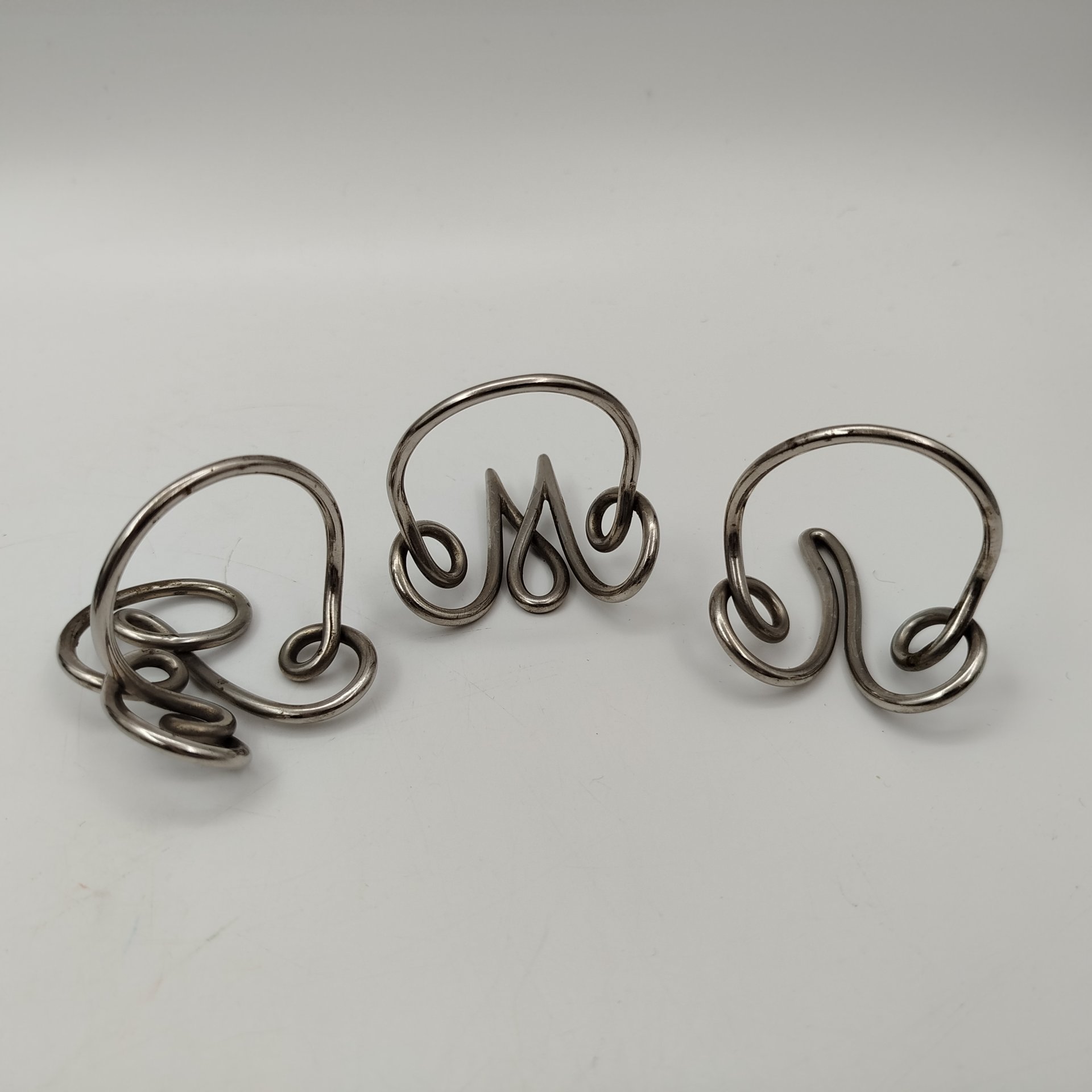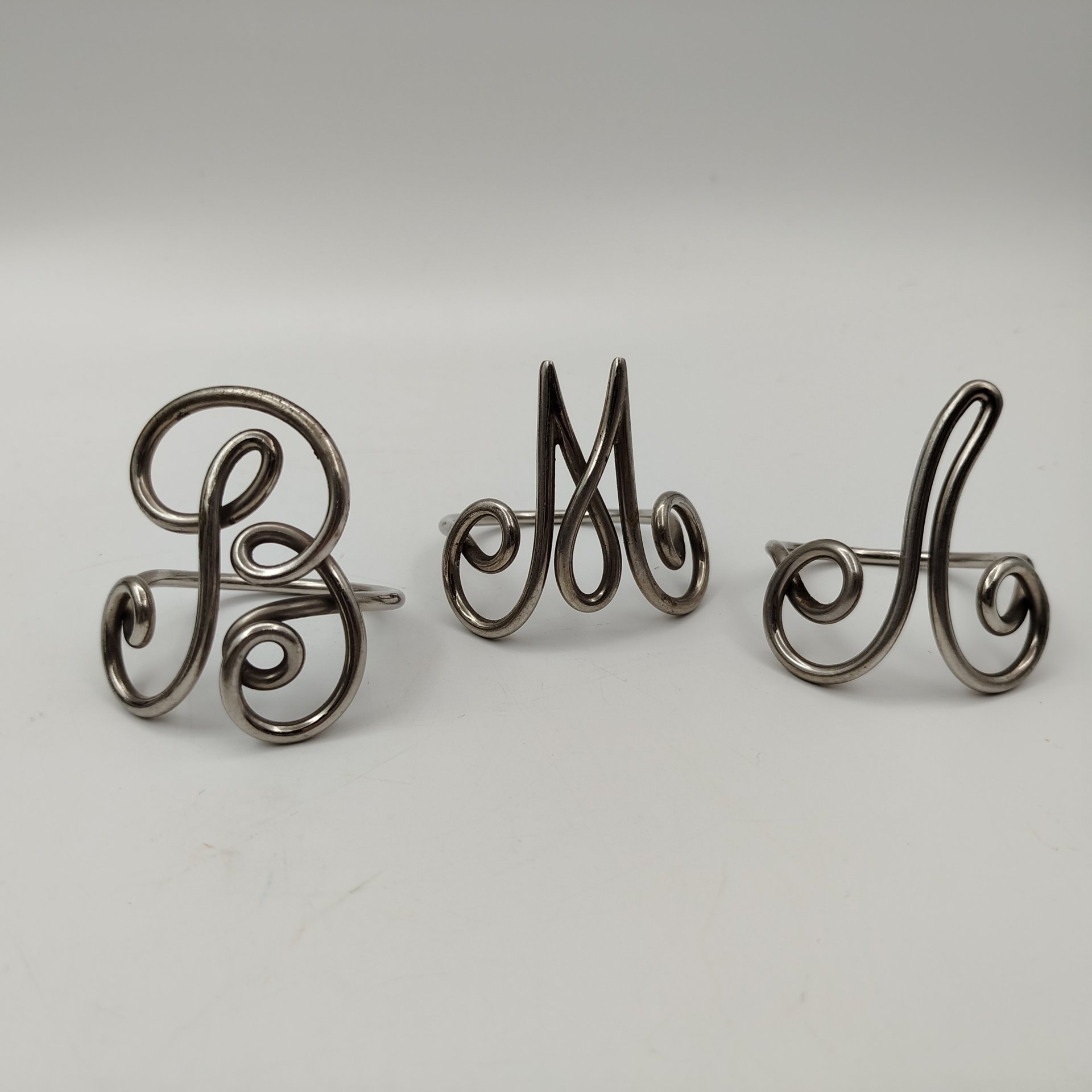 Набор из 3 колец для салфеток с буквами "Л", "М" и "В", металл, серебрение, Россия, 1890-1930 гг.