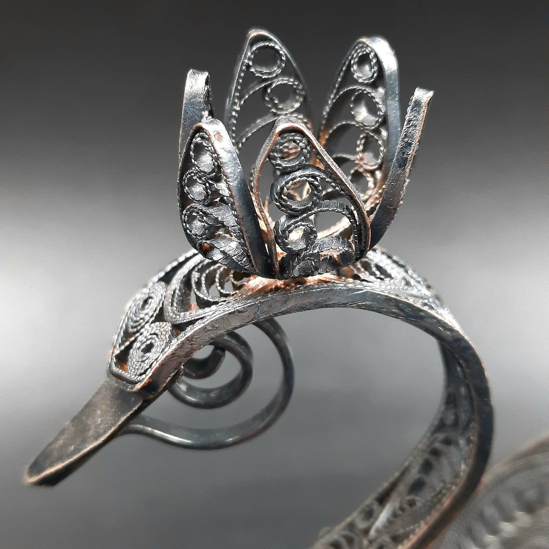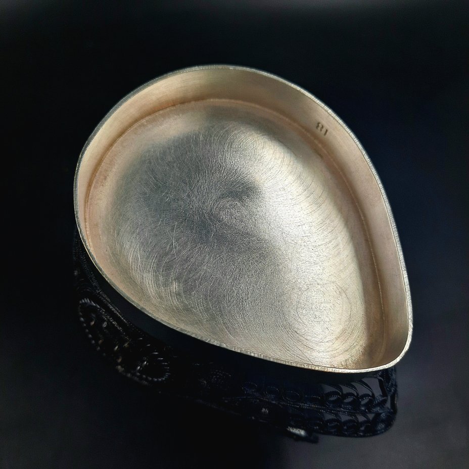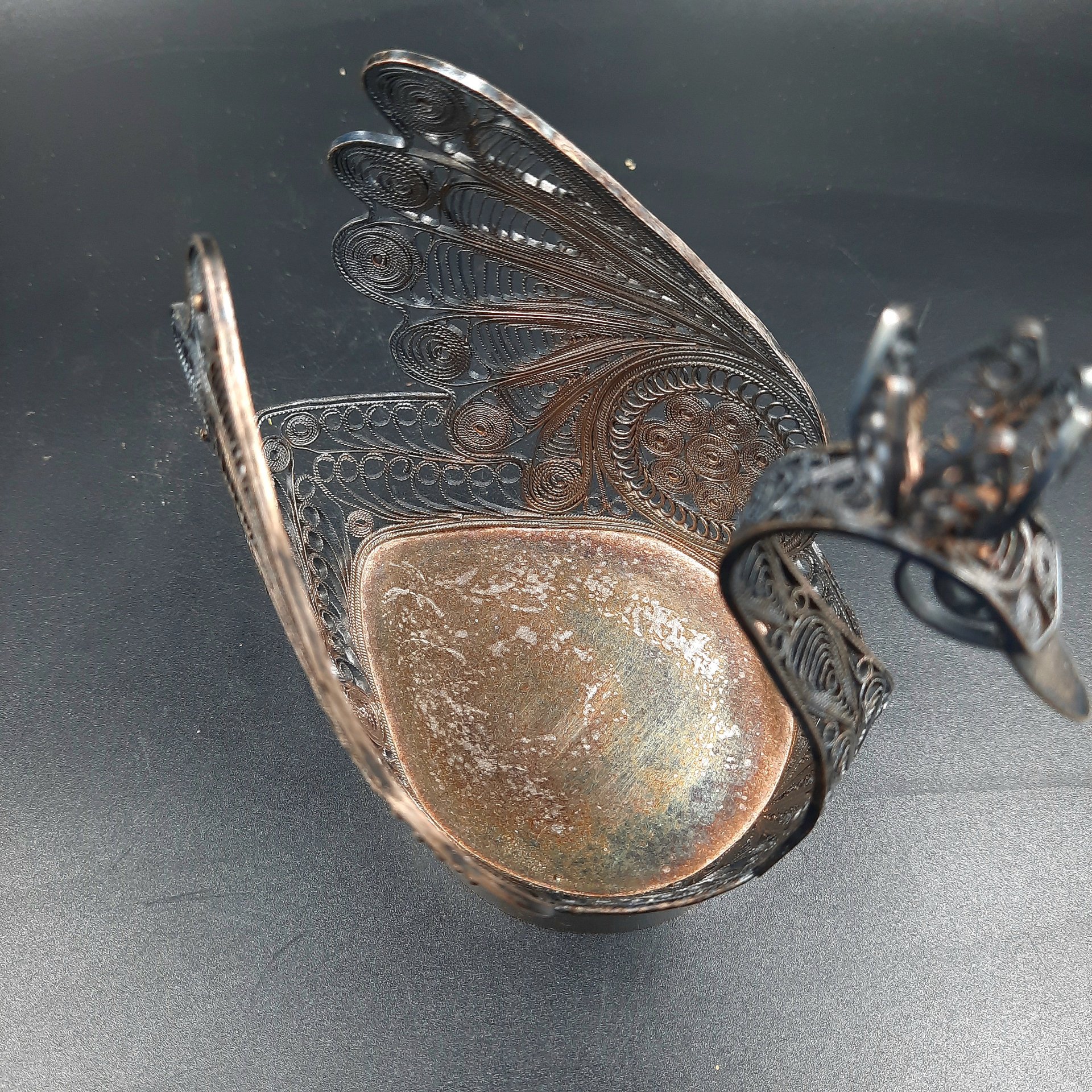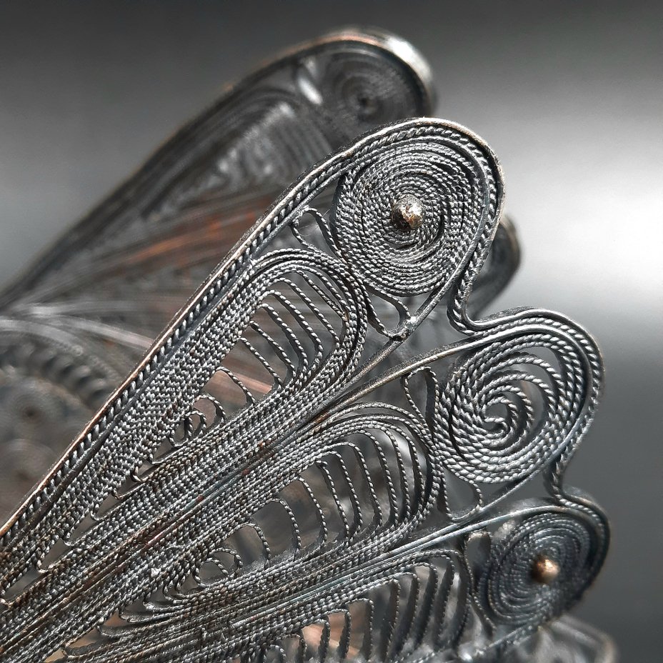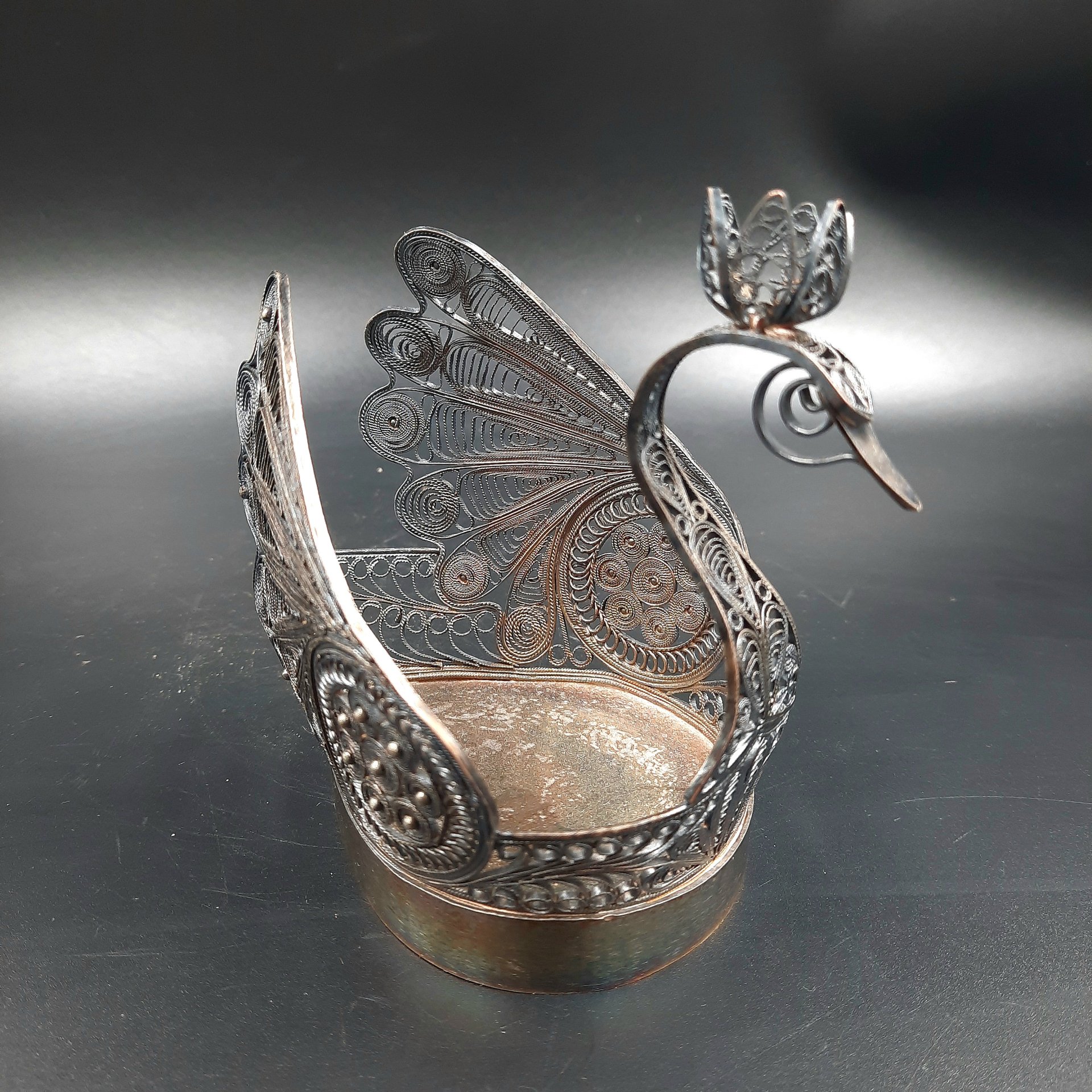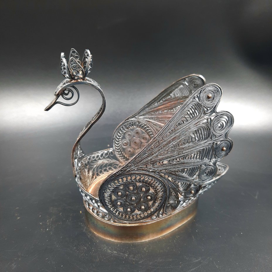 Салфетница "Лебедь", выполненная в технике скани, мельхиор (медь-никель), СССР, 1970-1990 гг.