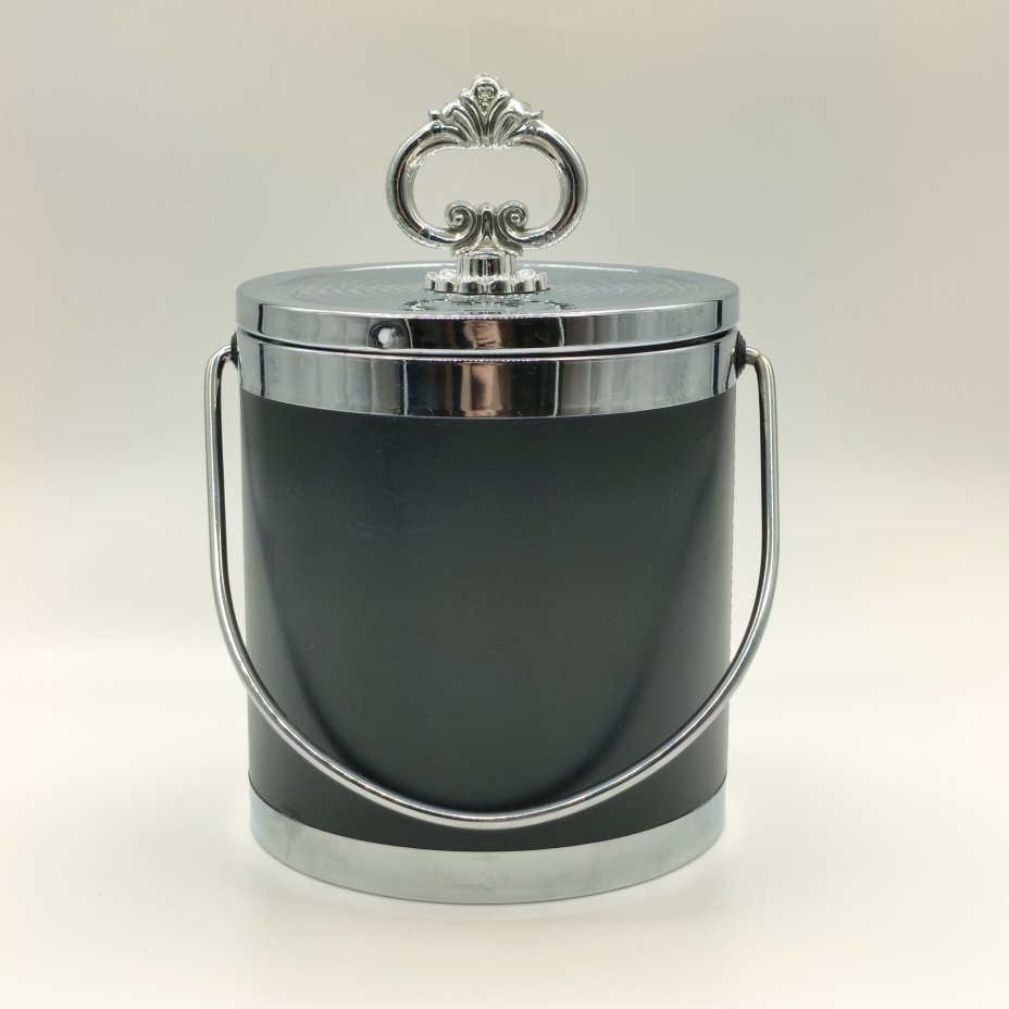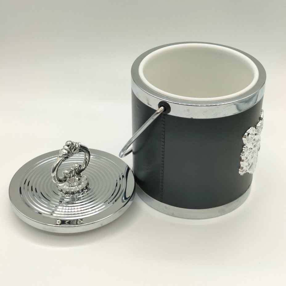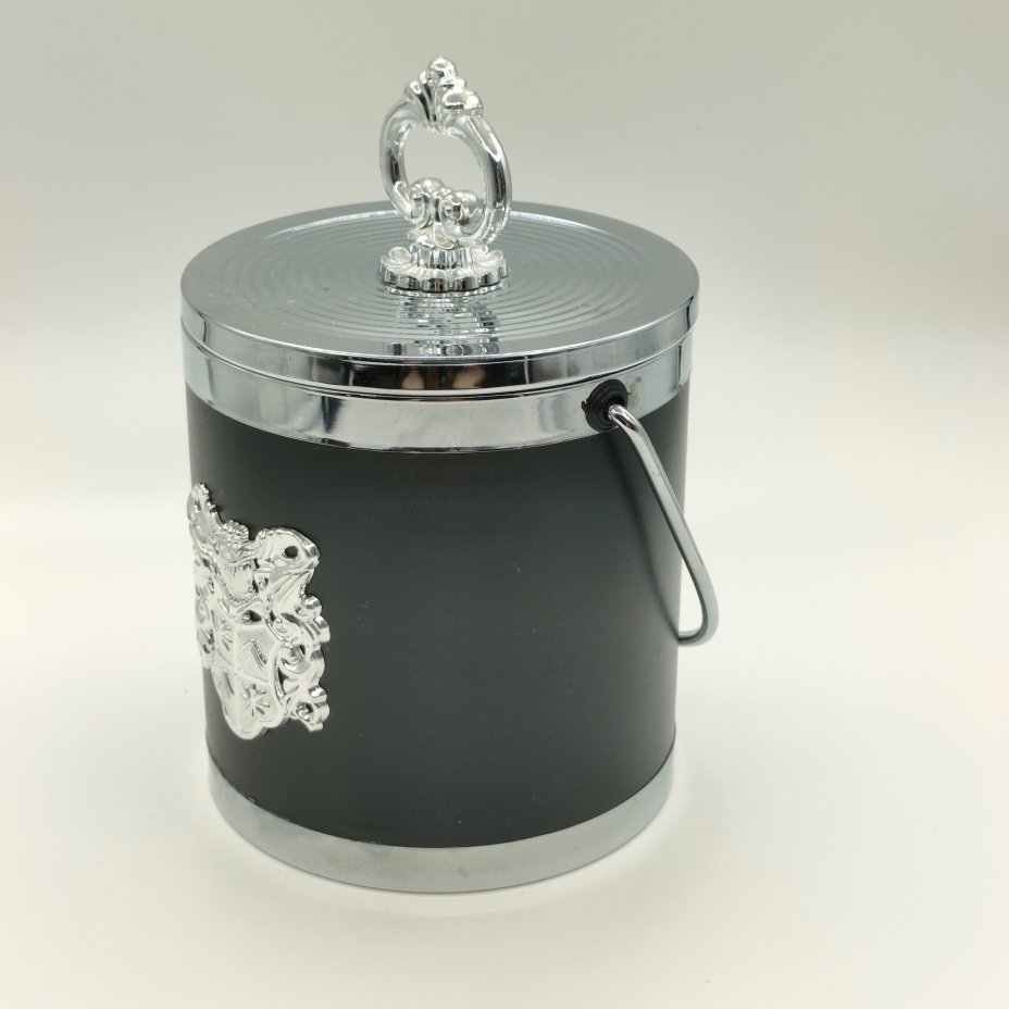Ведро для льда с рельефным декором в виде герба, сталь, пластмасса, кожзам, Франция, 1970-1990 гг.