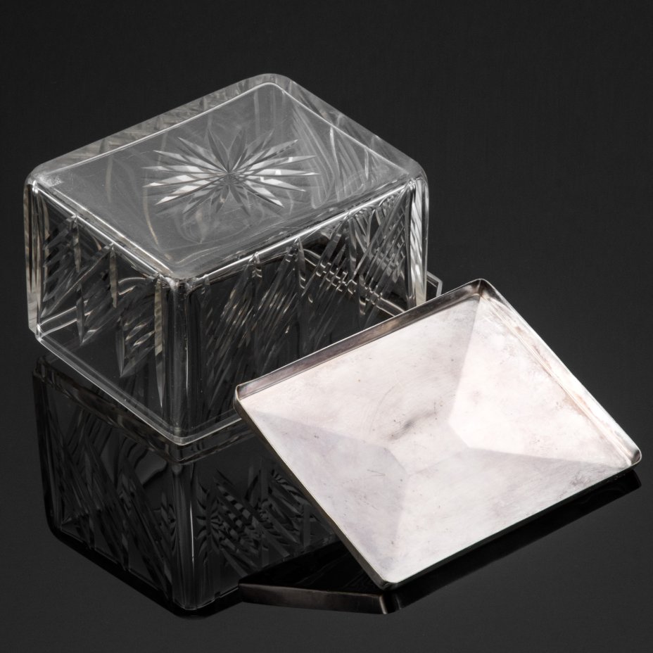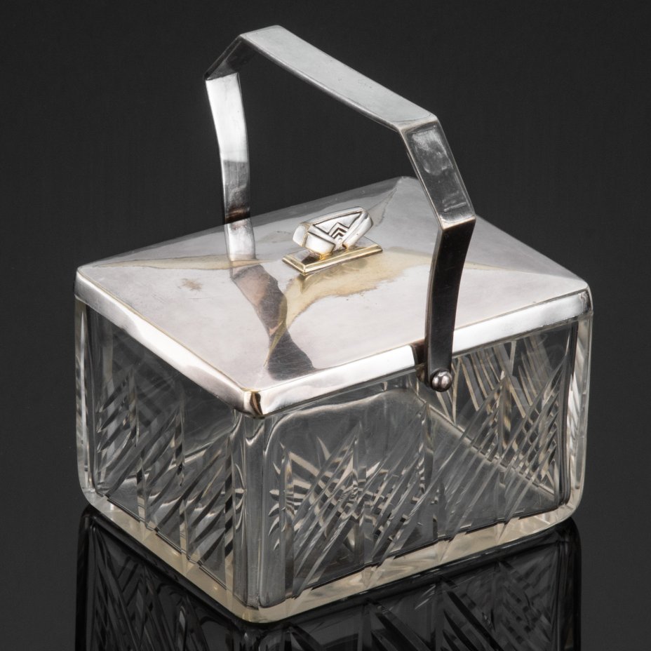 Бисквитница (чайница), украшенная резным декором и рокайльными элементами, стекло, алмазная грань, сплав металлов, Западная Европа, 1900-1920 гг.