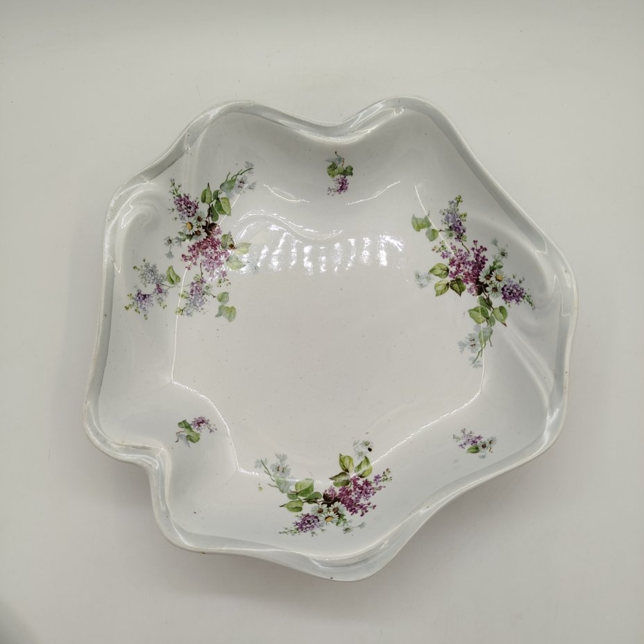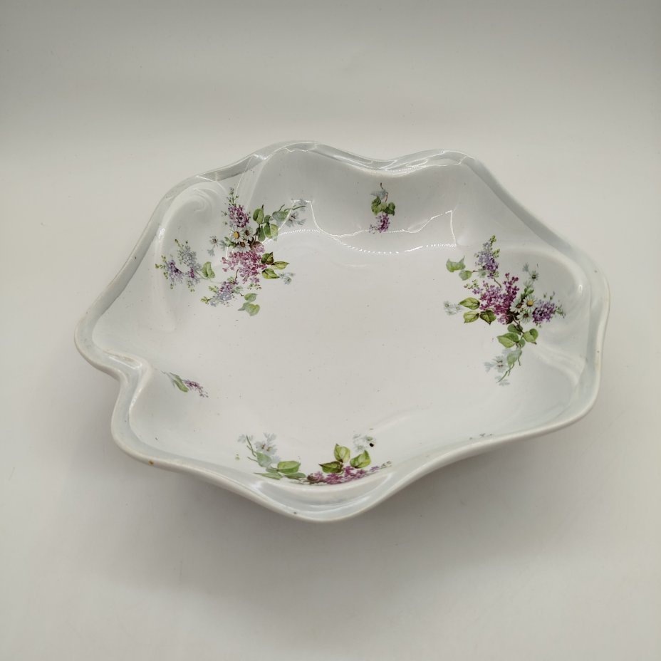 Блюдо фигурное в стиле модерн с цветочным декором, фаянс, деколь, Россия, 1910-1930 гг.