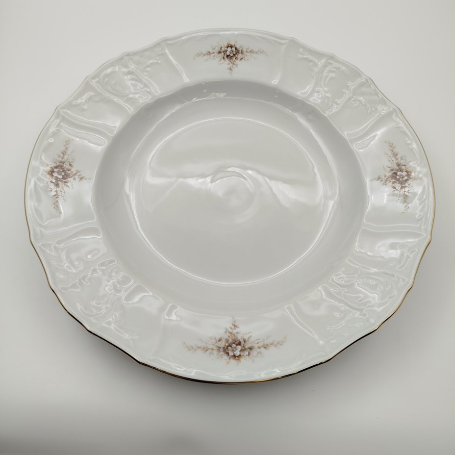 Большое сервировочное блюдо с цветочным декором и фигурным краем, фаянс, деколь, золочение, Песоченская фабрика Брянской губернии, СССР, 1924-1930 гг.