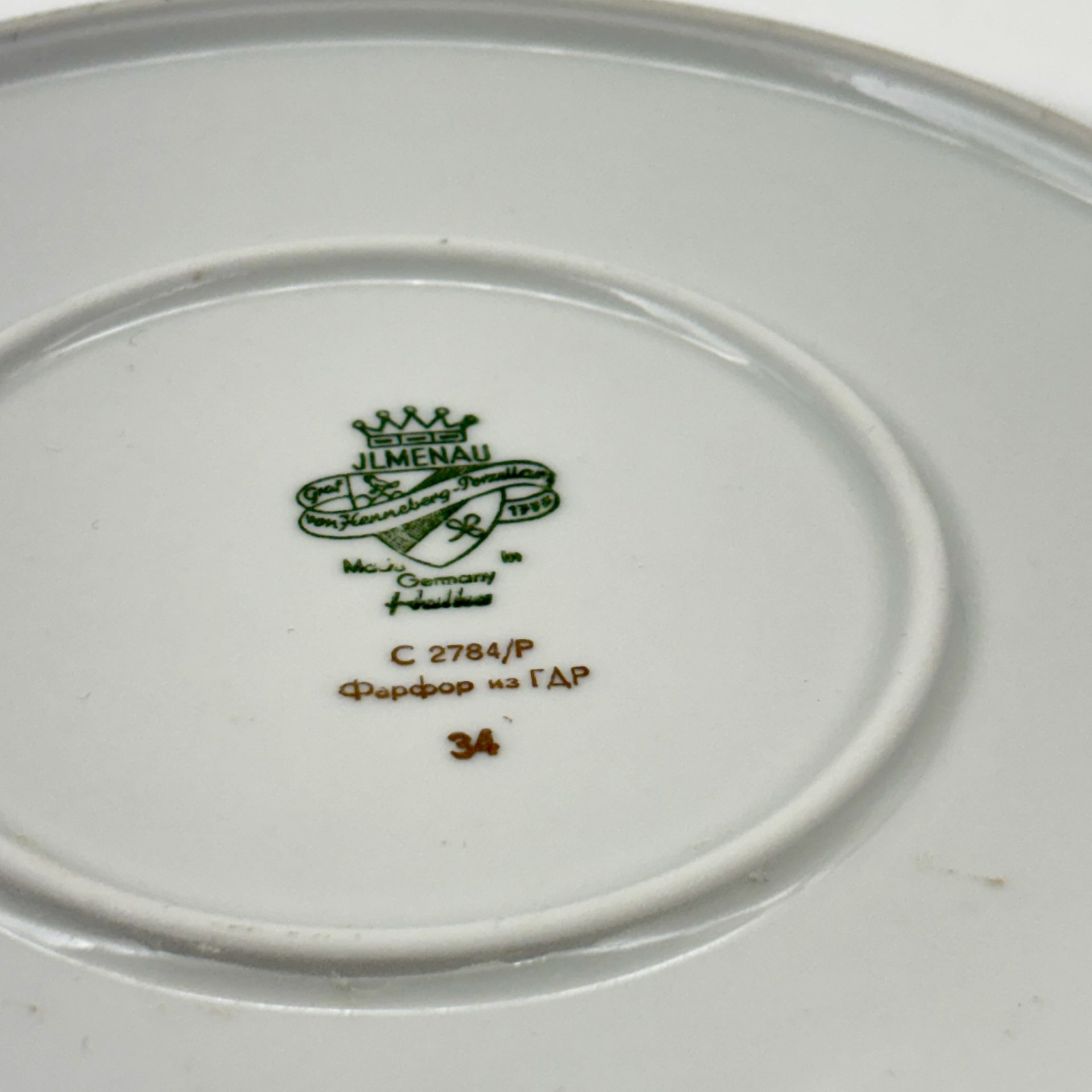 Пара сервировочных блюд (селедочниц) с цветочным декором золотистого цвета, фарфор, деколь, золочение, Graf Von Henneberg Porzellan, 1777 Jlmenau, ГДР, 1973-1977 гг.