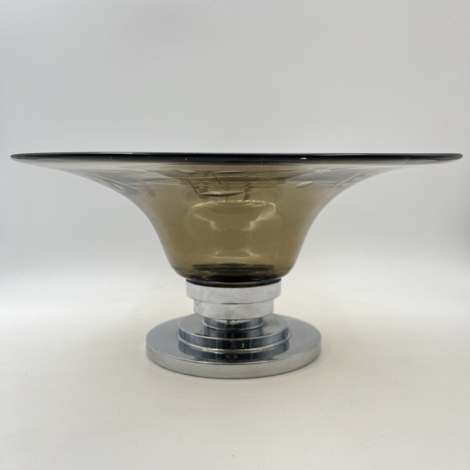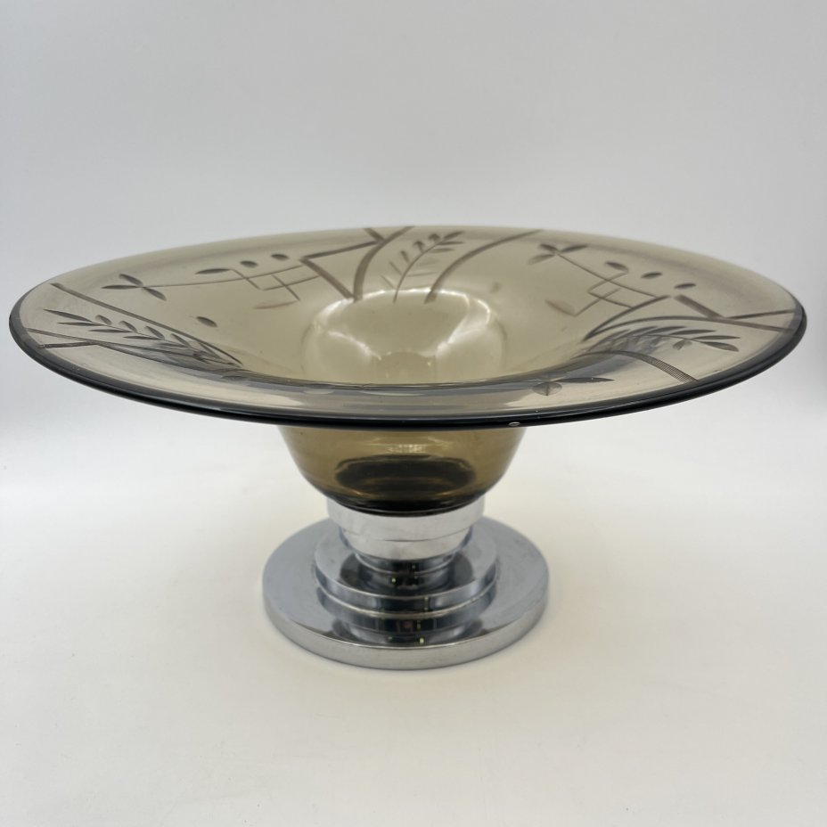 Блюдо на металлическом основании, стекло, резьба, металл, Западная Европа, 1950-1980 гг.
