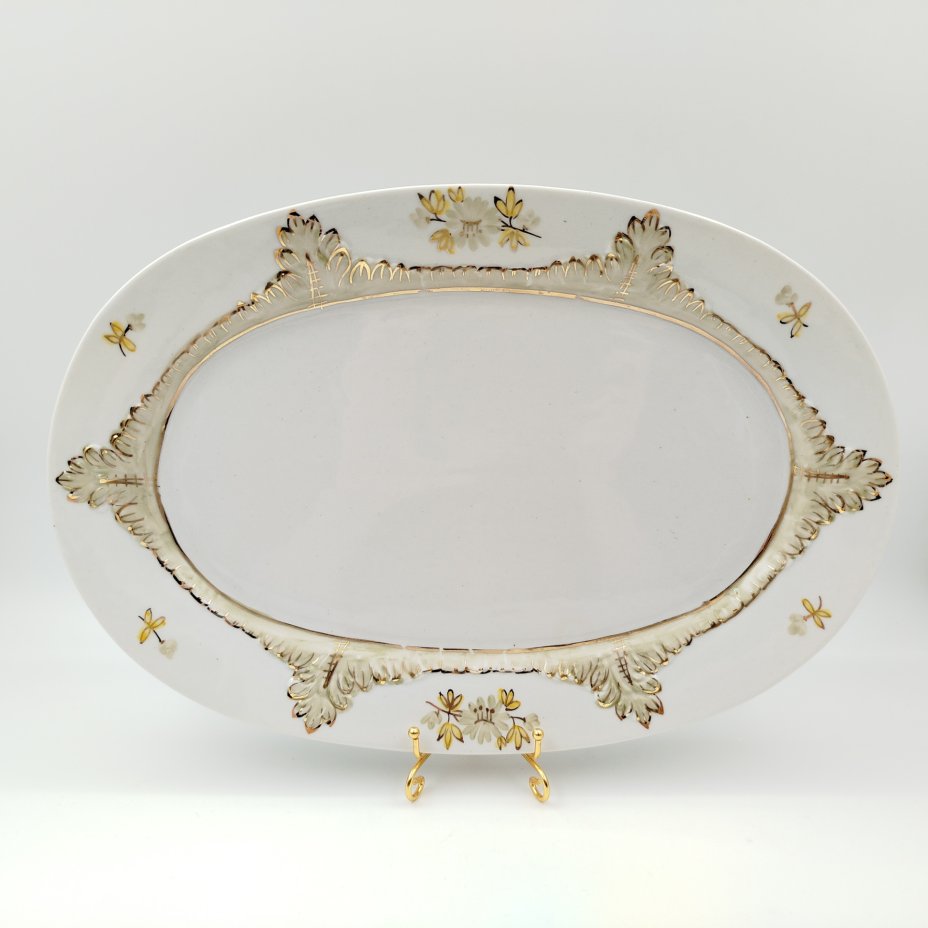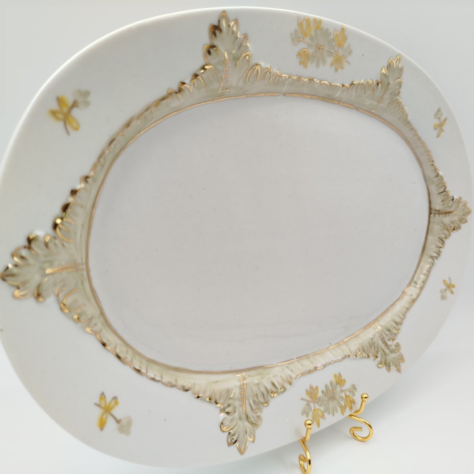 Блюдо овальной формы с растительным декором, фарфор, золочение, деколь, Concordia Lesov, Чехословакия, 1970-1991 гг.