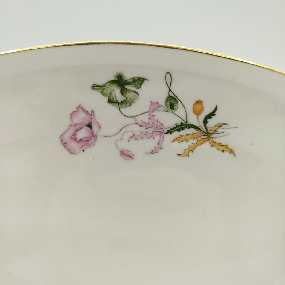 Блюдо круглой формы с декором в виде полевых цветов, фарфор, деколь, золочение, Kahla, ГДР, 1960-1990 гг.