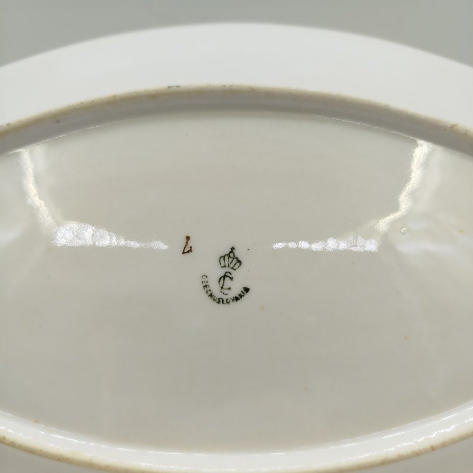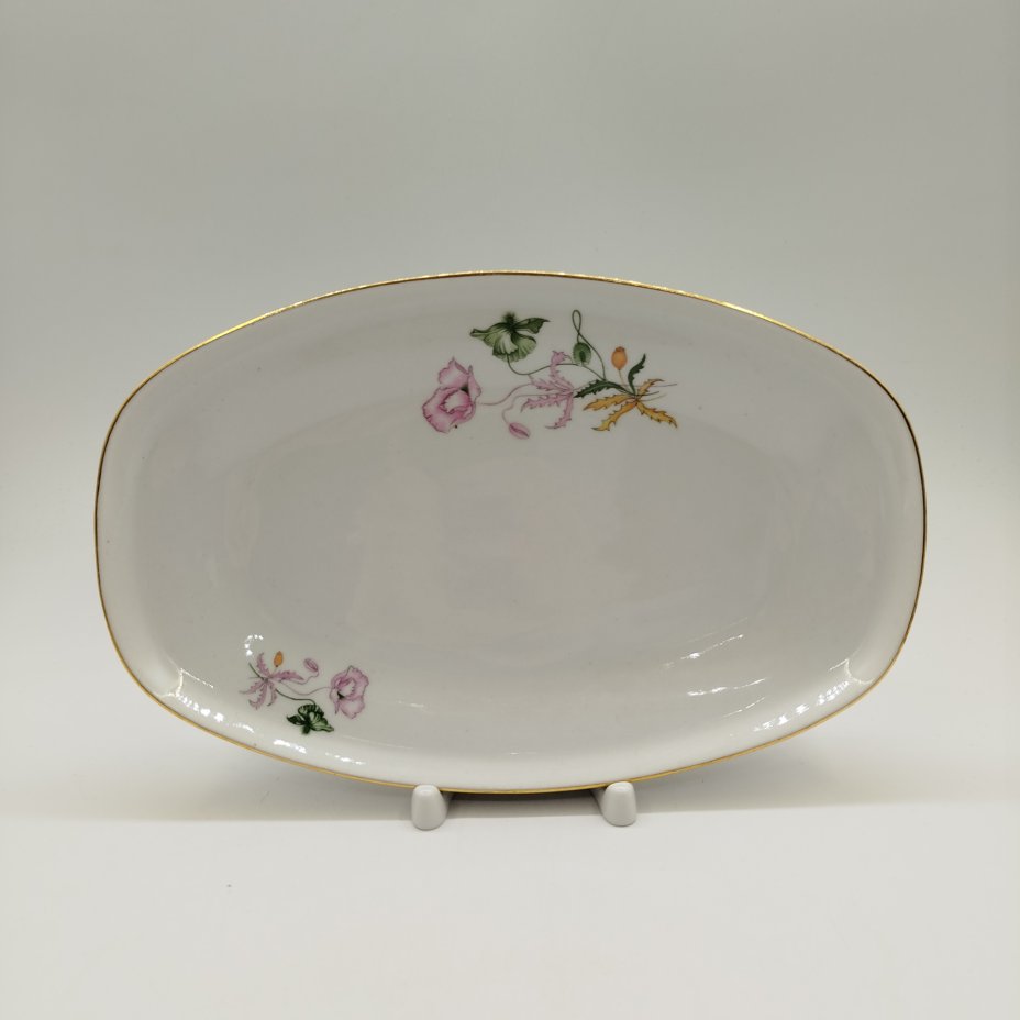 Блюдо овальной формы с растительным декором, фарфор, золочение, деколь, Concordia Lesov, Чехословакия, 1970-1991 гг.