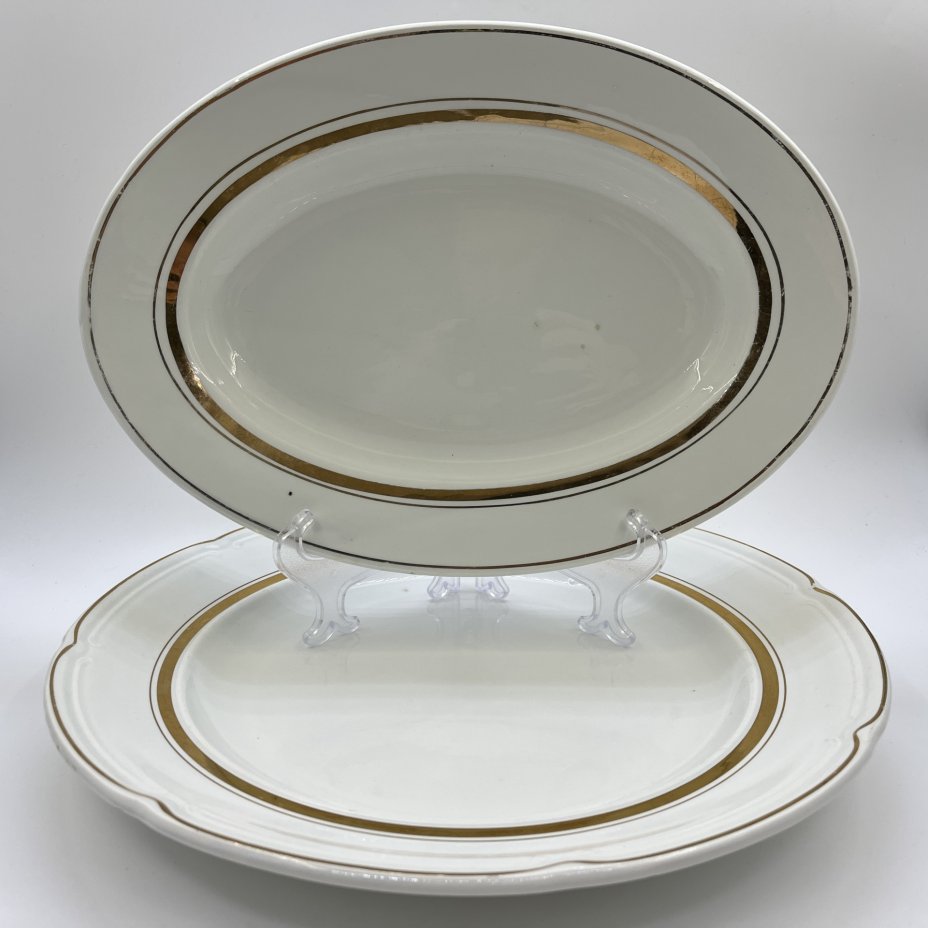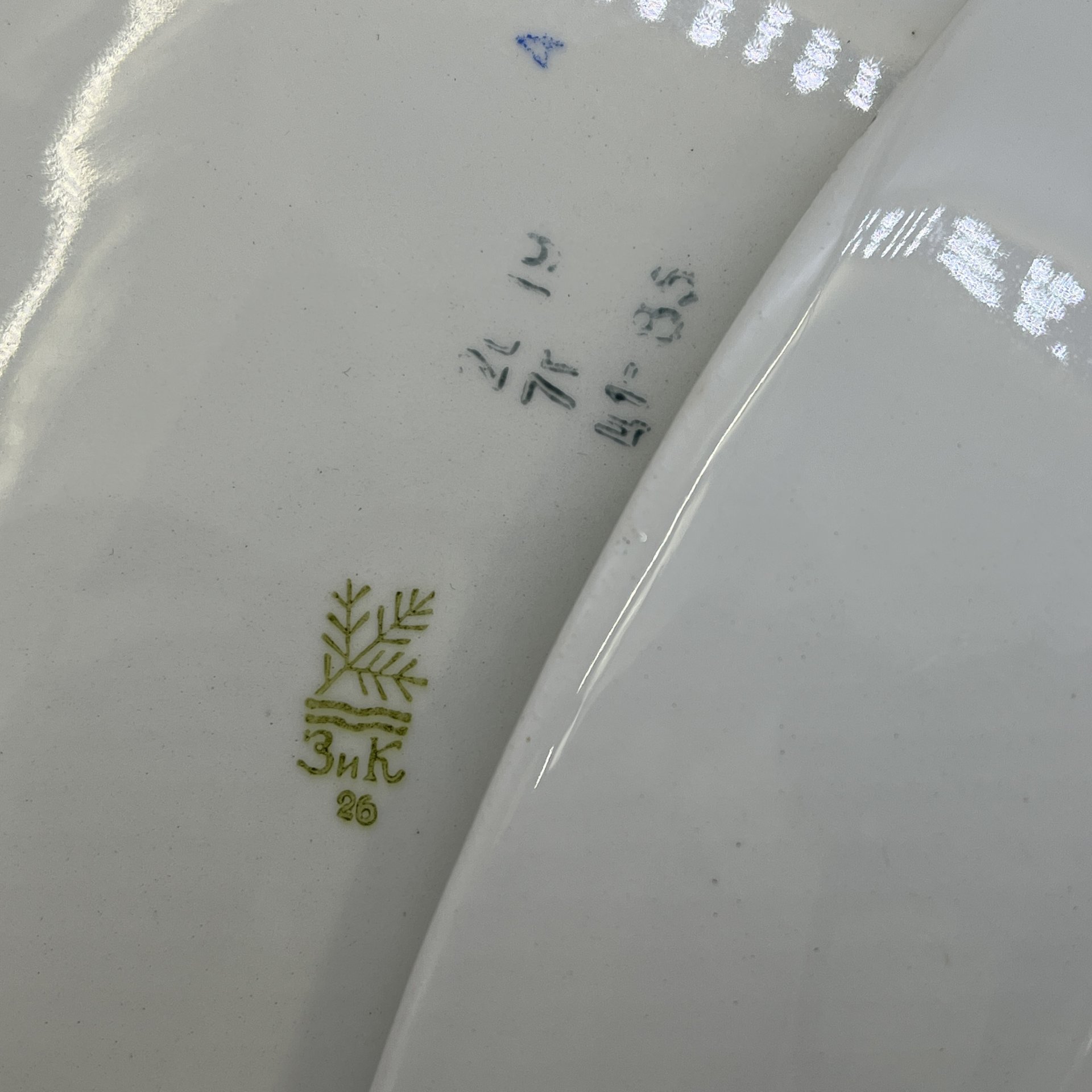 Большое сервировочное блюдо с золоченым декором, фарфор, золочение, Барановский фарфоровый завод, СССР, 1970-1991 гг.