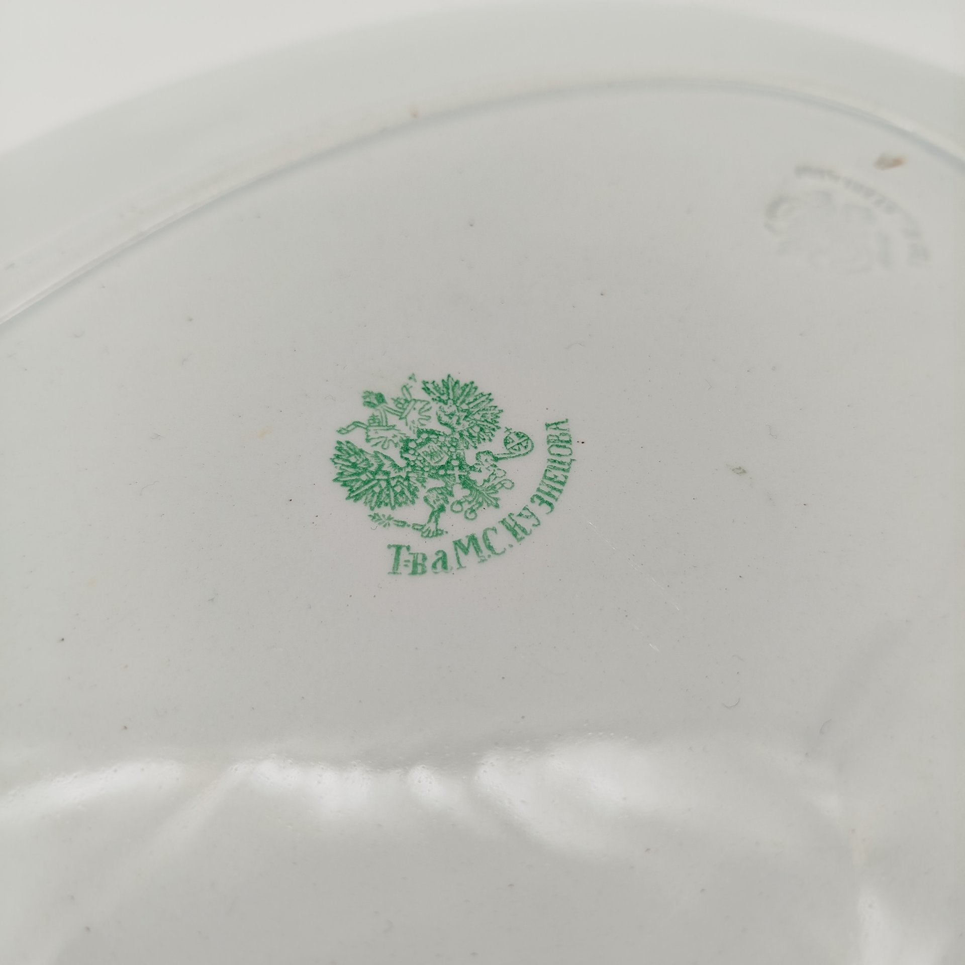 Блюдо круглой формы с цветочным декором золотистого цвета, фарфор, деколь, золочение, Graf Von Henneberg Porzellan, 1777 Jlmenau, ГДР, 1973-1977 гг.
