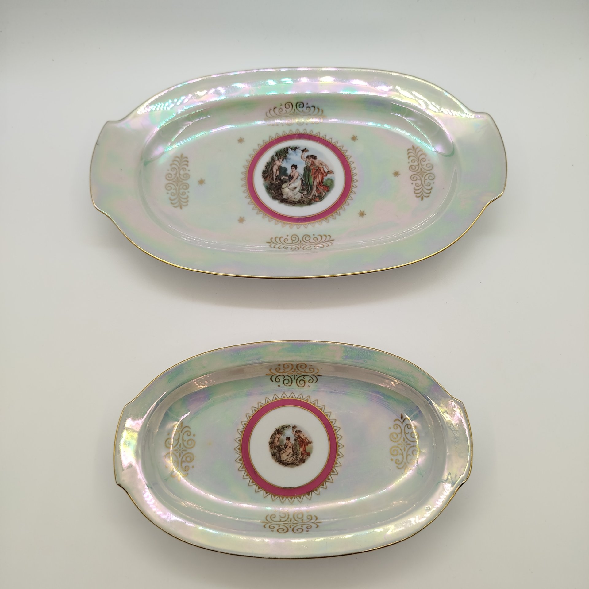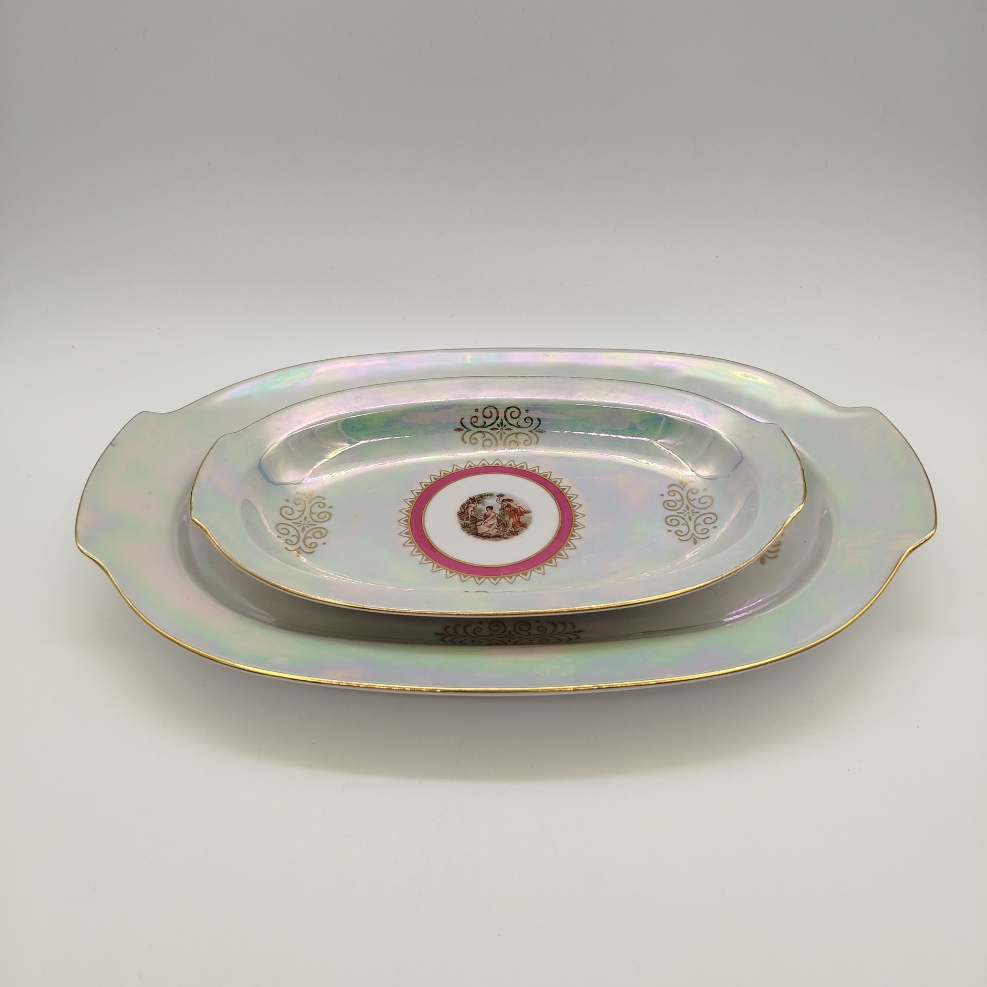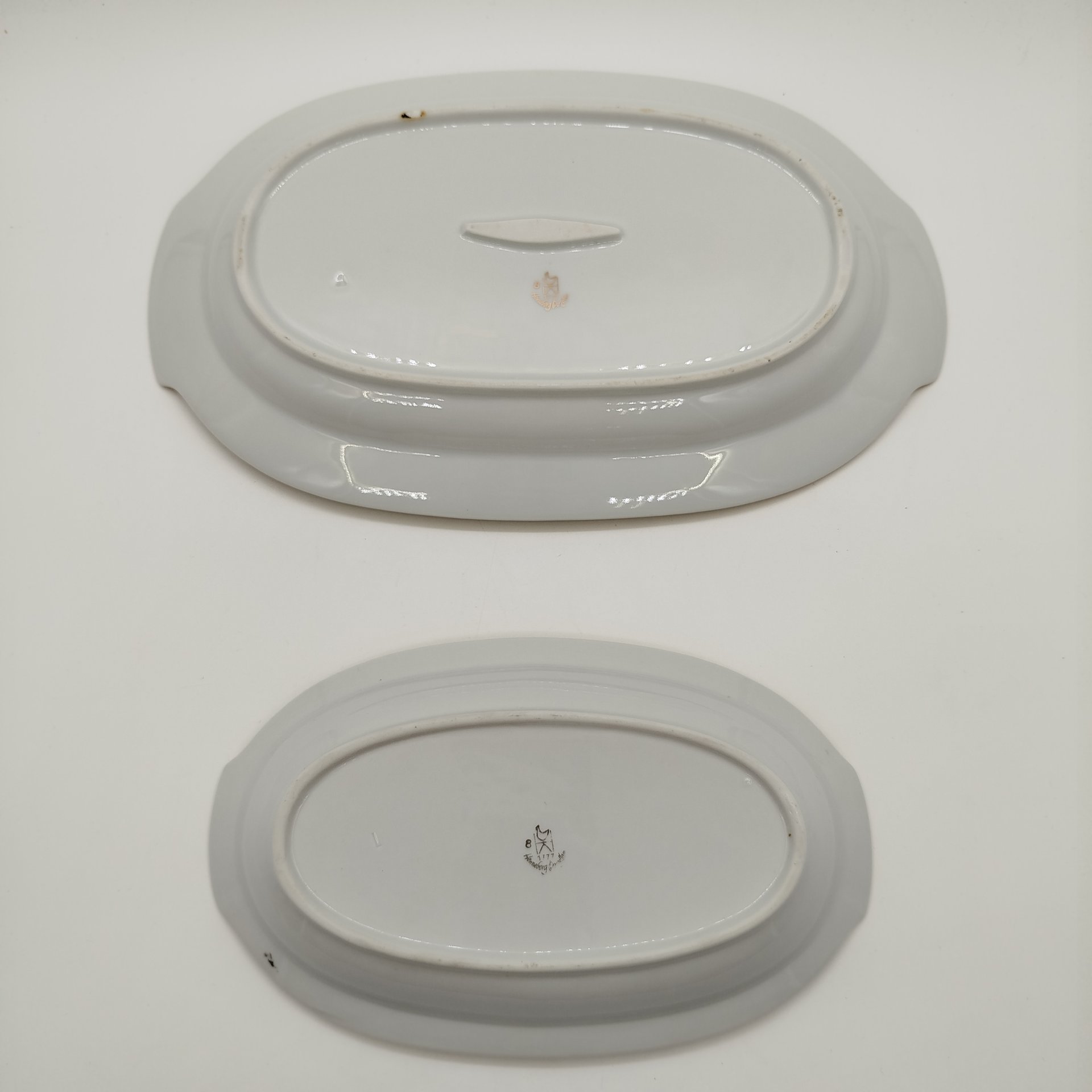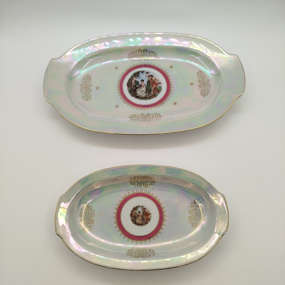 Набор из двух сервировочных блюд овальной формы из сервиза мадонна, фарфор, деколь, обводка, золочение, люстр, Graf Von Henneberg Porzellan, 1777 Jlmenau, ГДР, 1972-1977 гг.