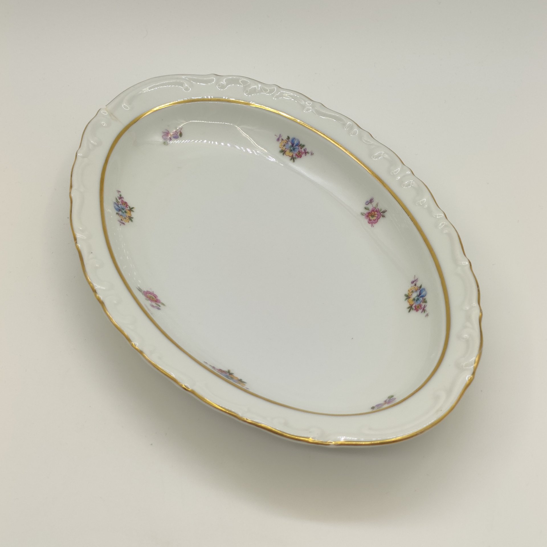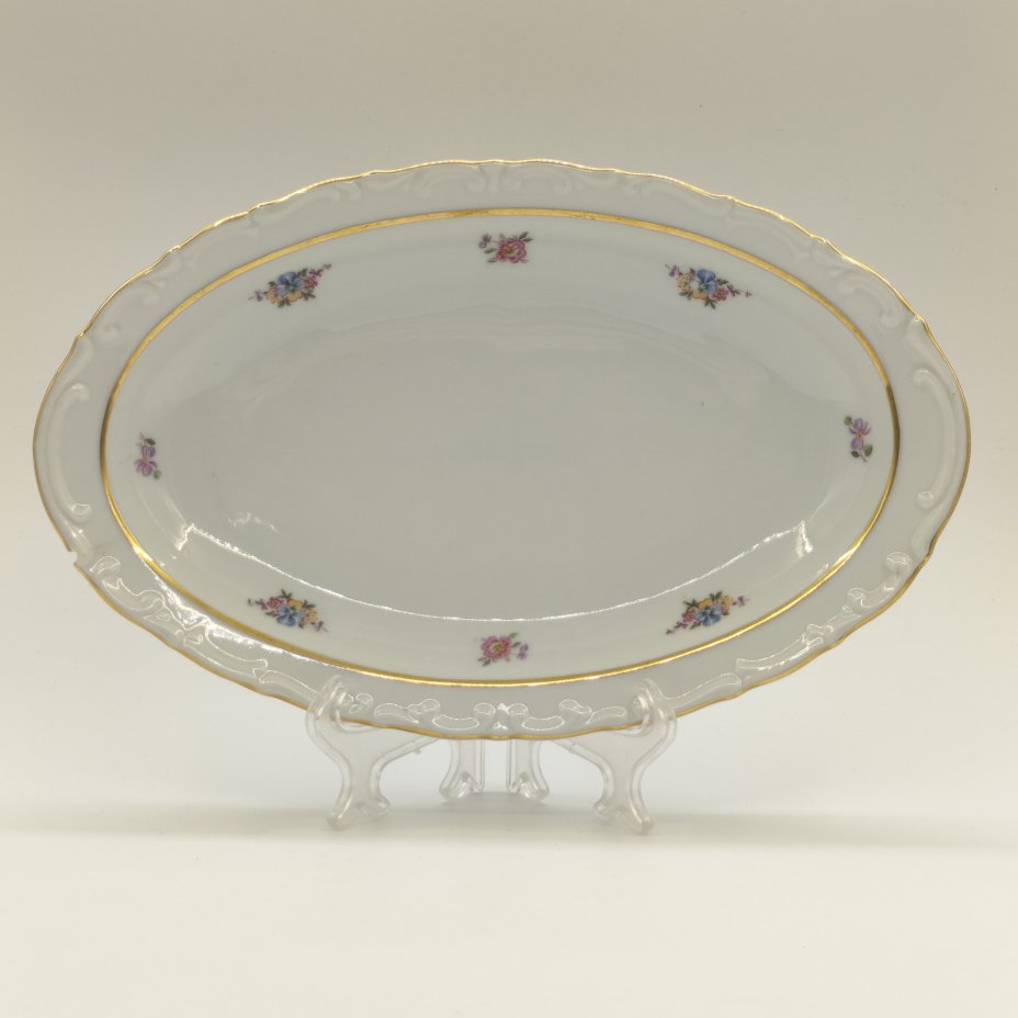 Блюдо овальной формы с растительным декором, фарфор, золочение, деколь, Concordia Lesov, Чехословакия, 1970-1991 гг.