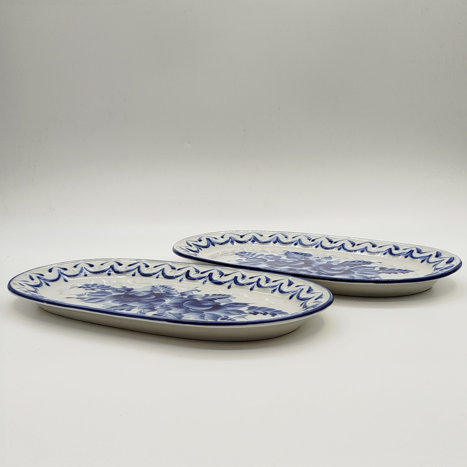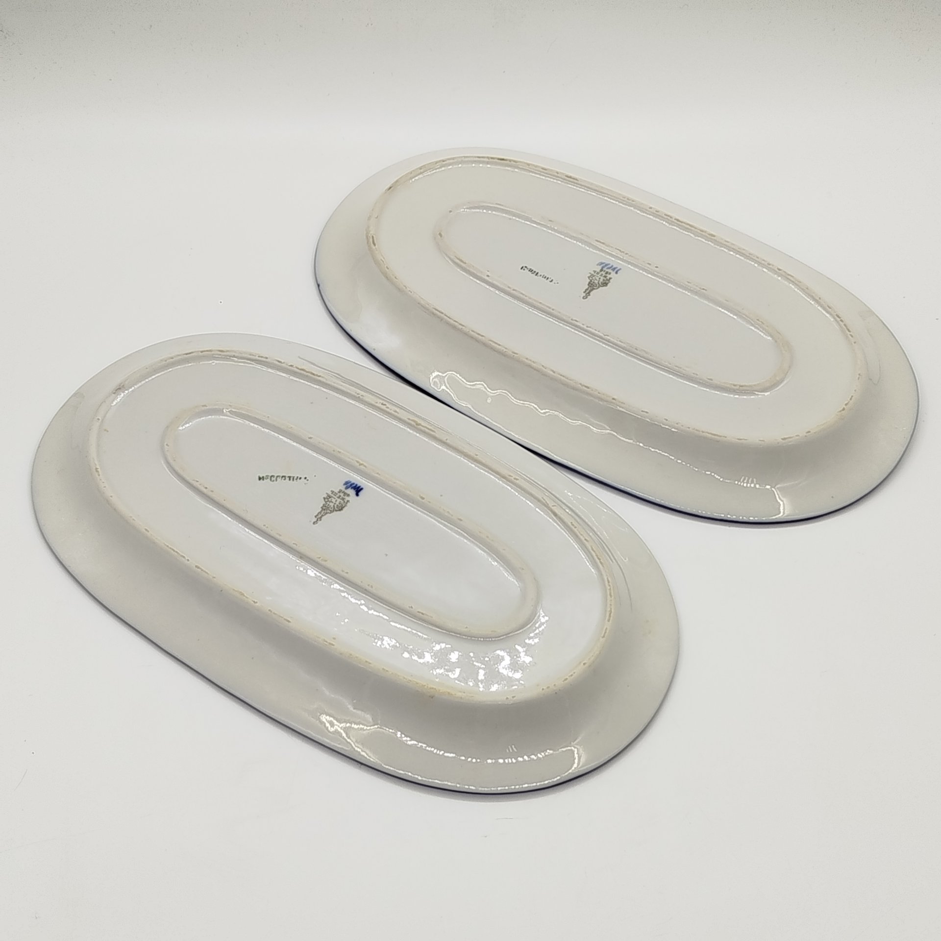 Пара сервировочных блюд (селедочниц) с цветочным декором золотистого цвета, фарфор, деколь, золочение, Graf Von Henneberg Porzellan, 1777 Jlmenau, ГДР, 1973-1977 гг.