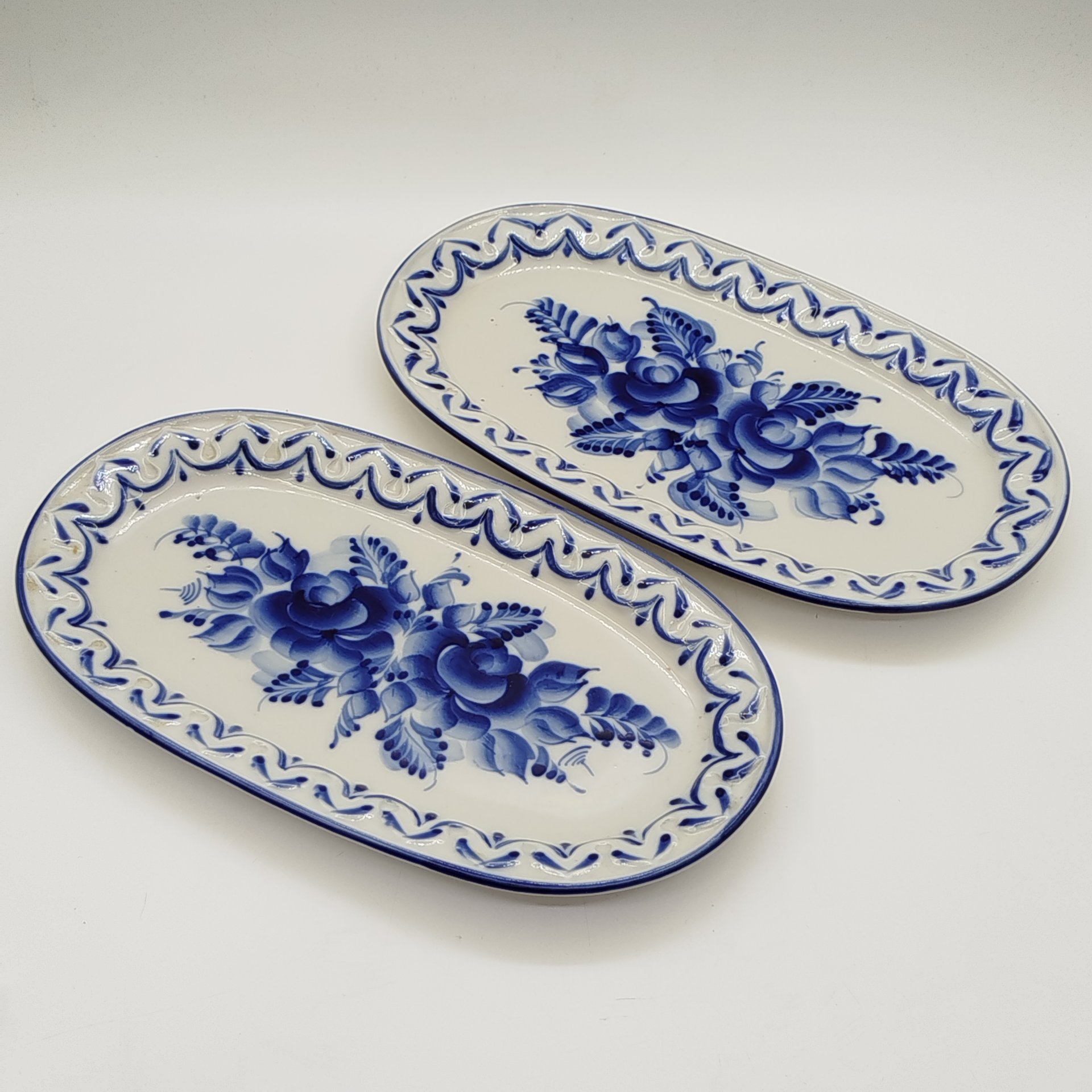 Набор из 3-х миниатюрных салатников с цветочным декором, Гжель, фарфор, роспись, Российская Федерация, 1991-2015 гг.