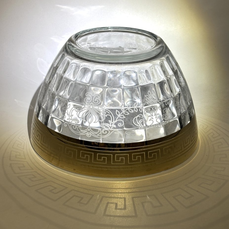 Блюдо сервировочное (конфетница) с рельефным цветочным декором, стекло, пресс, Soga Glass, Япония, 2000-2010 гг.