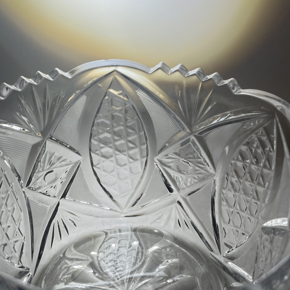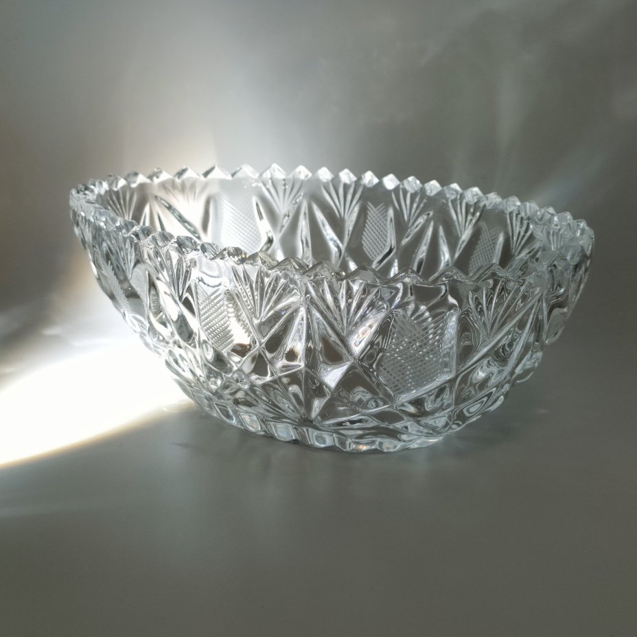 Салатник с резным геометрическим декором, хрусталь, алмазная грань, СССР, 1970-1990 гг.
