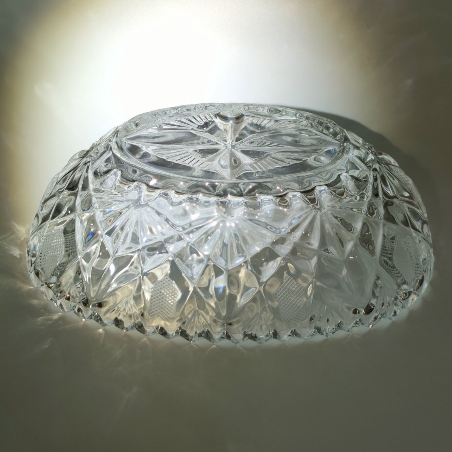 Салатник круглой формы с резным геометрическим декором, хрусталь, алмазная грань, СССР, 1970-1990 гг.