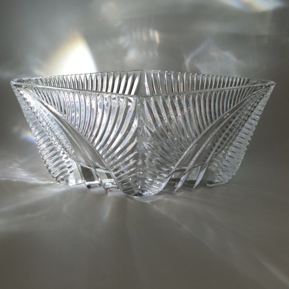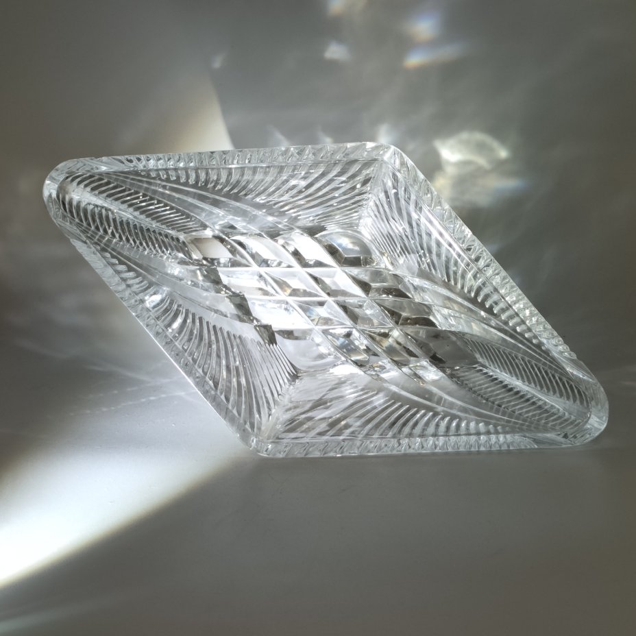 Ваза сервировочная (салатник, конфетница) в форме ромба, хрусталь, алмазная грань, СССР, 1970-1990 гг.