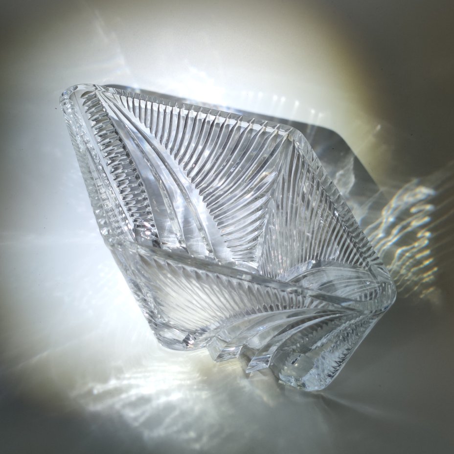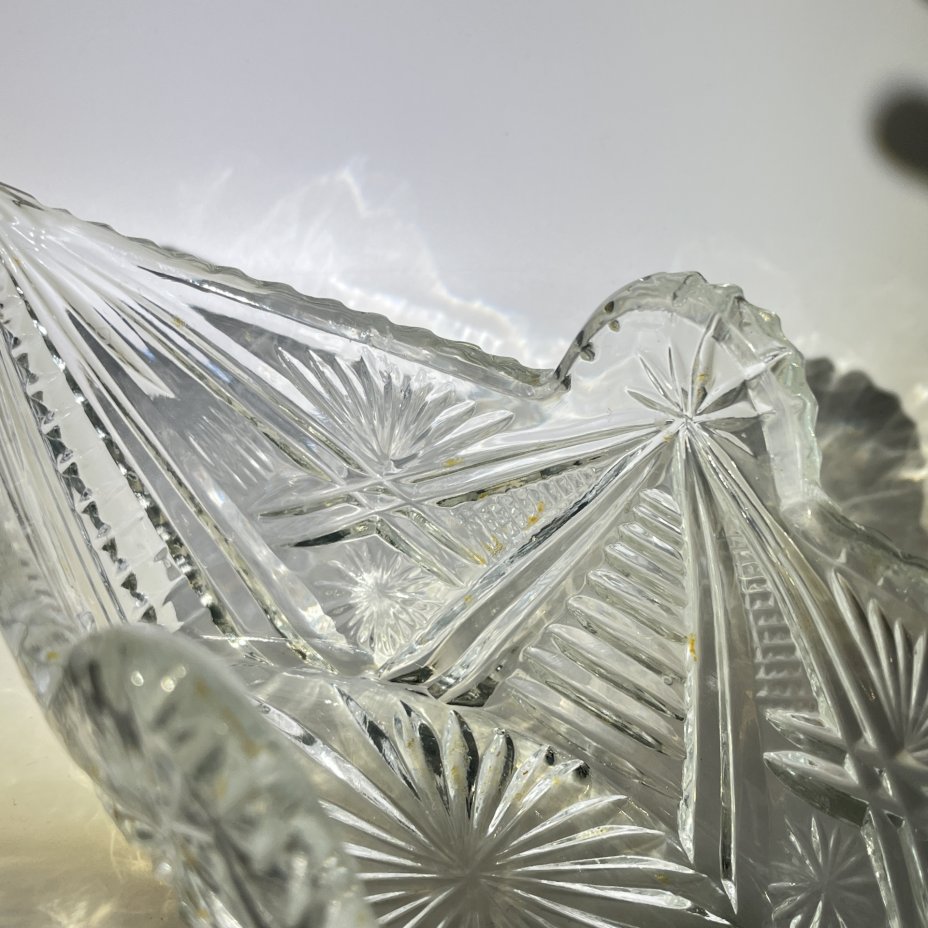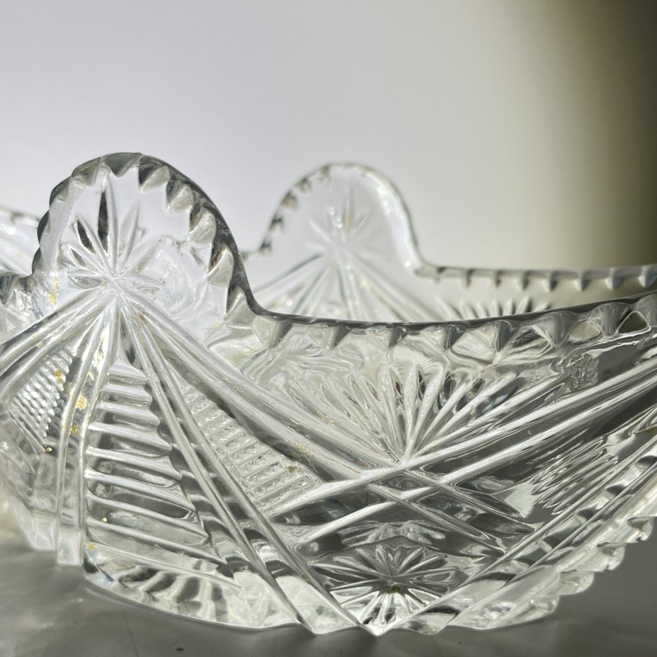 Салатник (конфетница) с геометрическим декором, хрусталь, алмазная грань, СССР, 1960-1980 гг.
