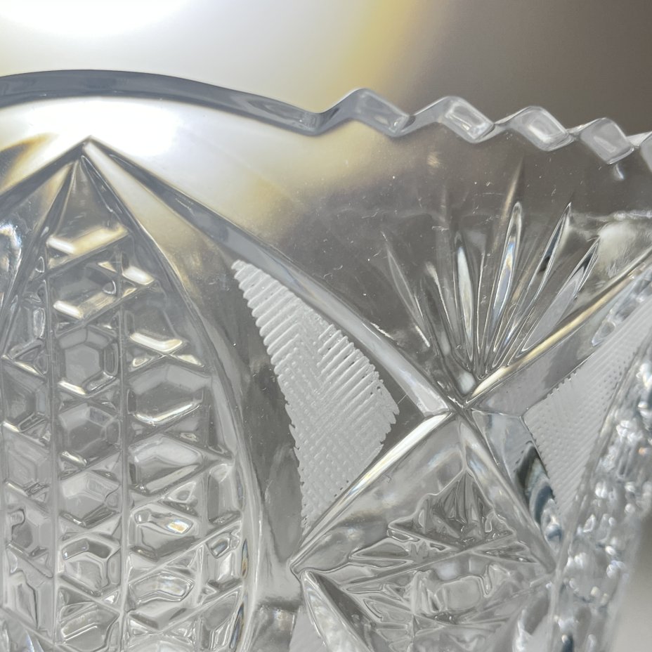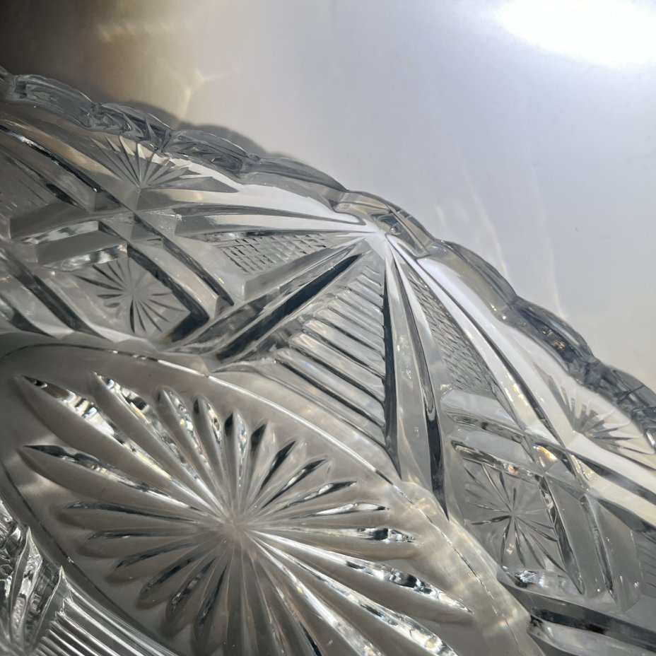 Салатник (конфетница) с резным геометрическим декором, хрусталь, алмазная грань, СССР, 1980-2000 гг.