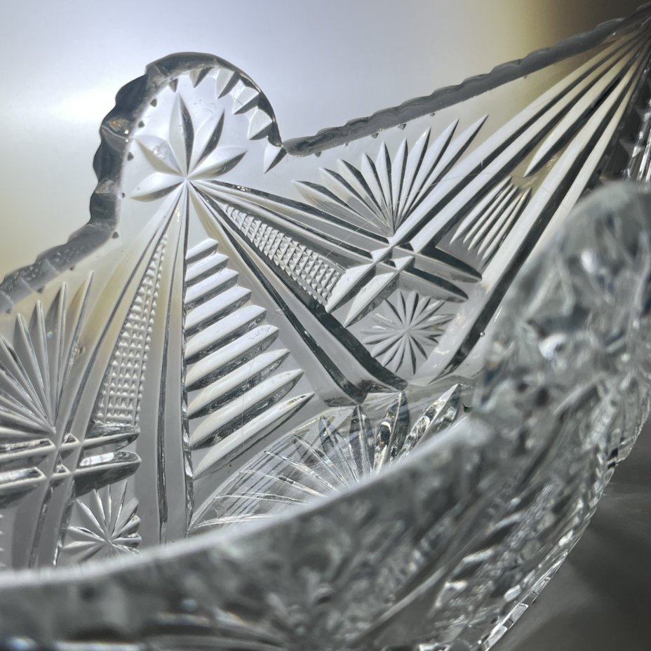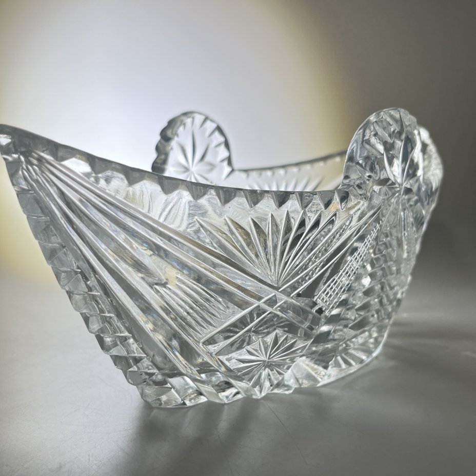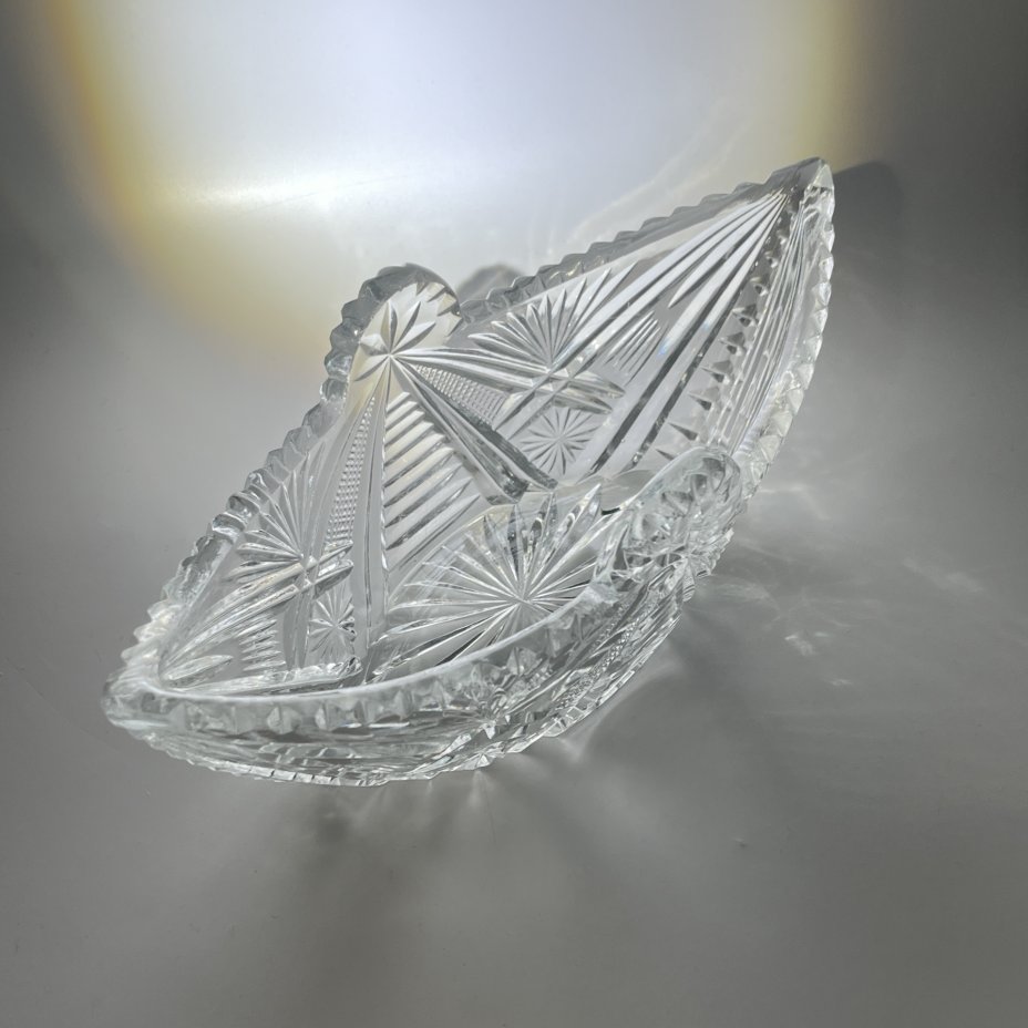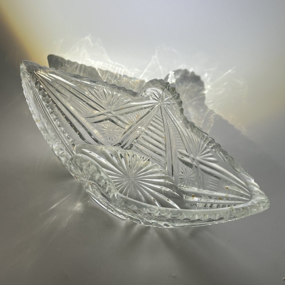 Салатник в форме ладьи с резным геометрическим декором, хрусталь, алмазная грань, СССР, 1970-1991 гг.