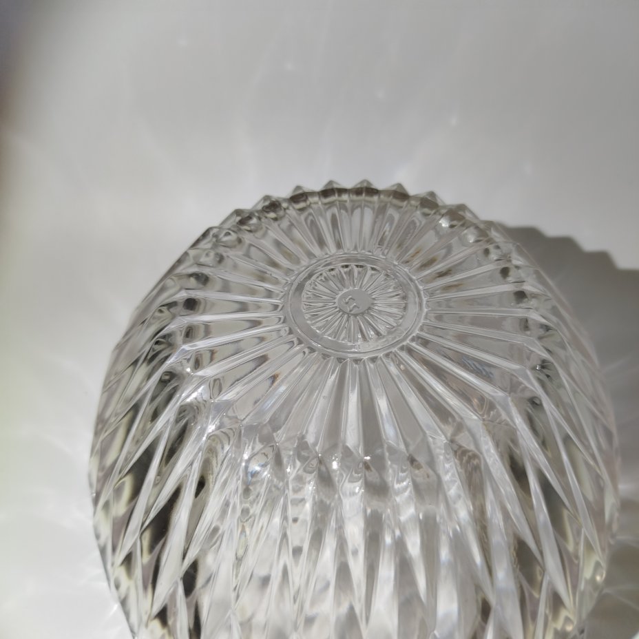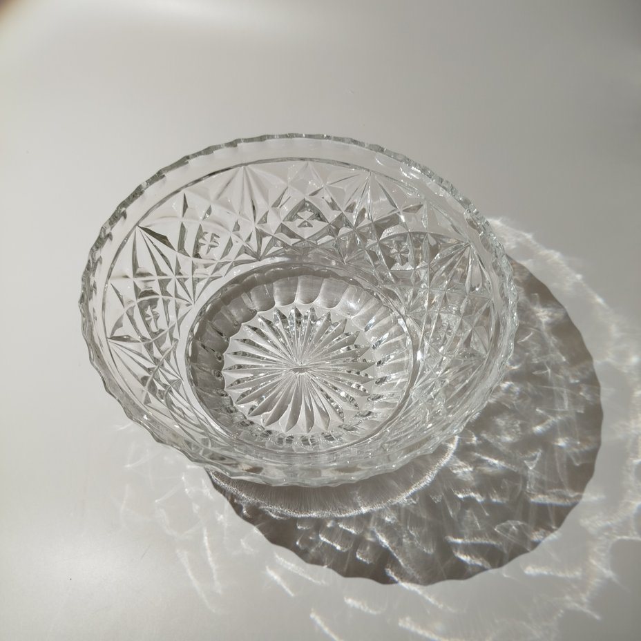 Небольшой круглый салатник с резным геометрическим декором, хрусталь, алмазная грань, СССР, 1970-1990 гг.