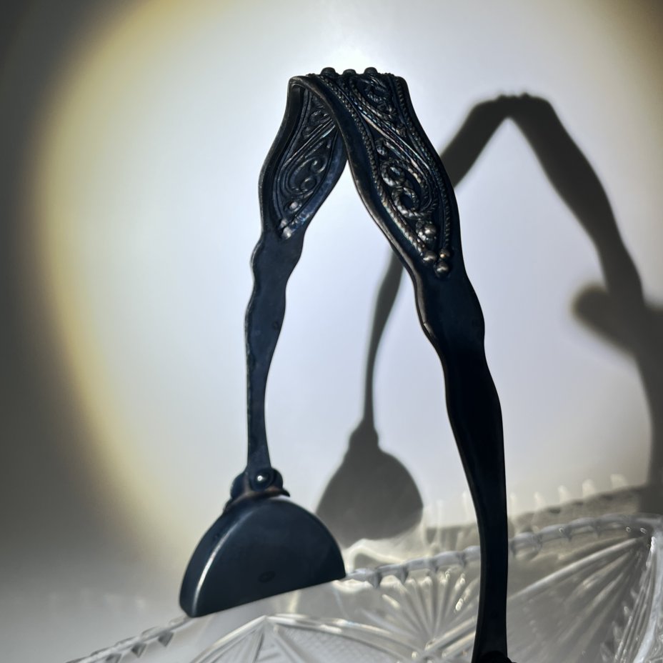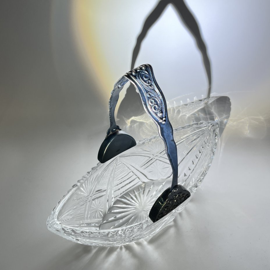 Салатник-ладья с металлической ручкой, хрусталь, металл, СССР, 1970-1990 гг.
