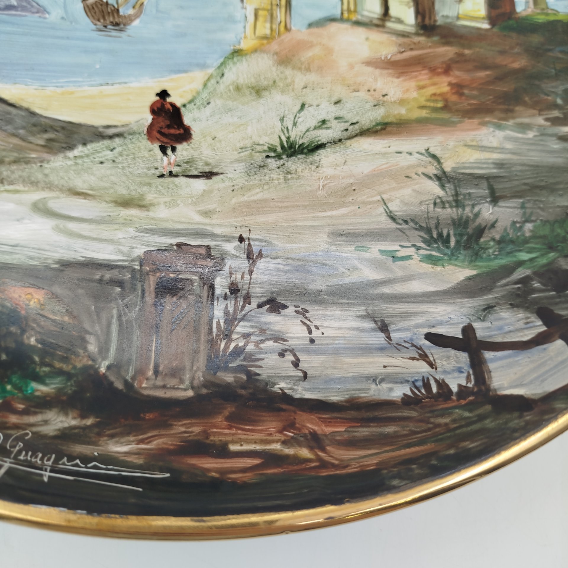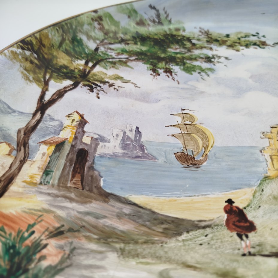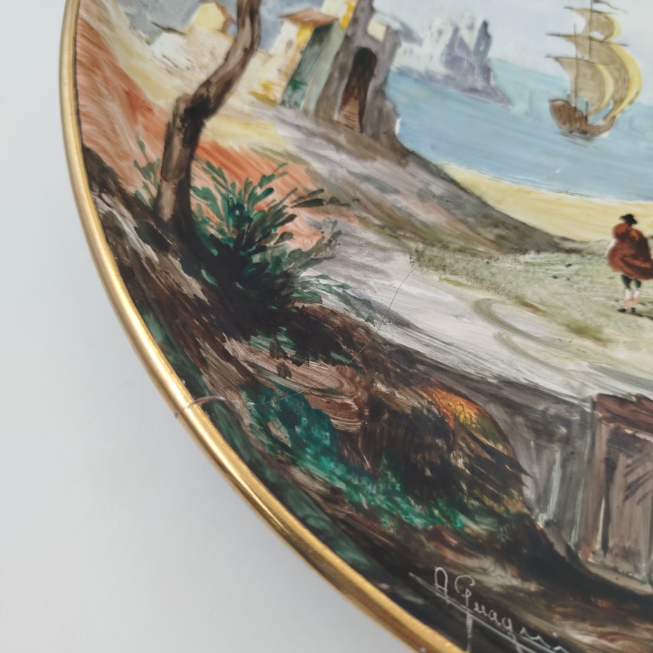 Тарелка настенная "Пейзаж с парусником", Richard Ginori, керамика, роспись, золочение, Италия, 1970-1990 гг.