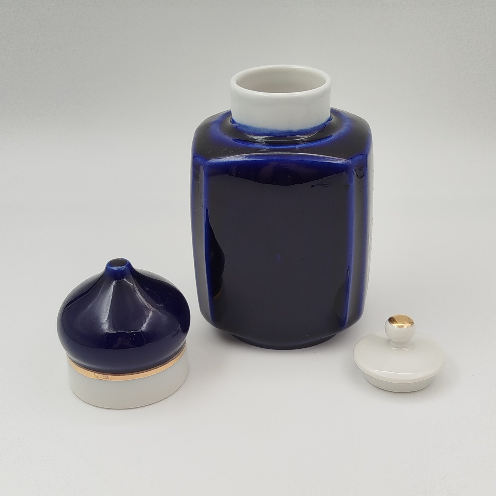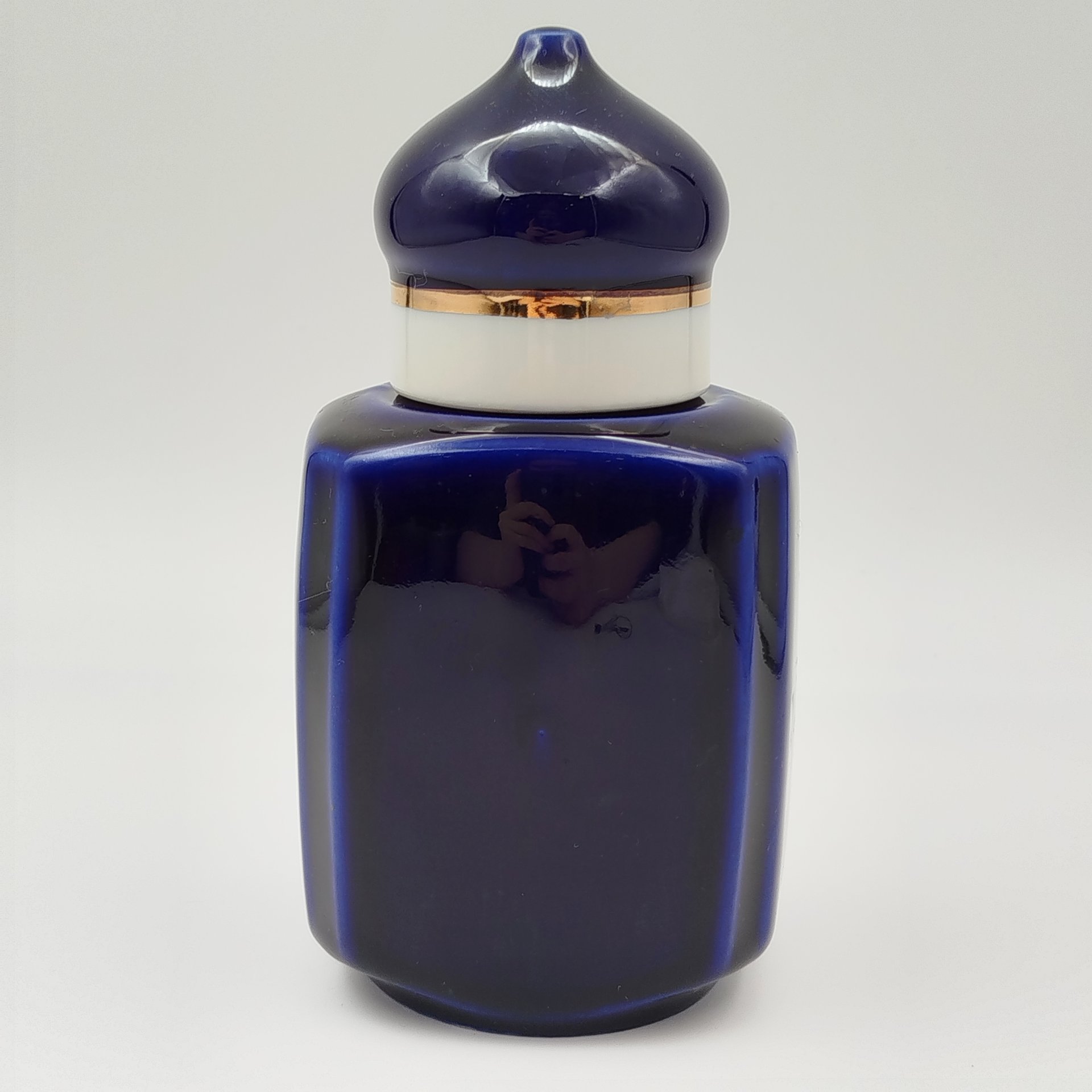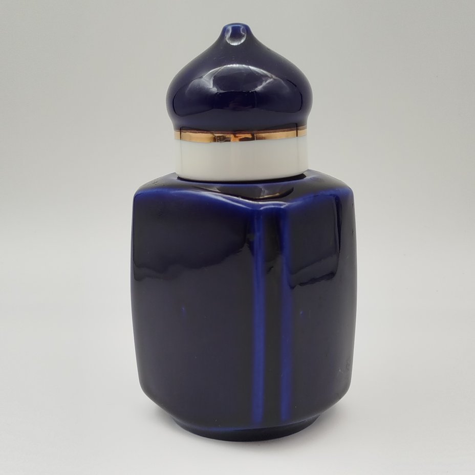 Чайница с крышкой куполообразной формы, фарфор, крытье кобальтом, Дмитровский фарфоровый завод (ДФЗ Вербилки), СССР, 1966-1992 гг.