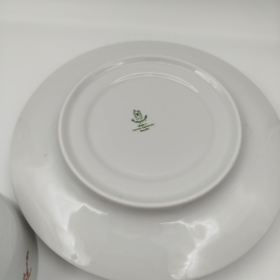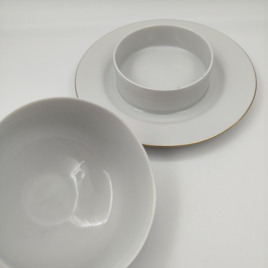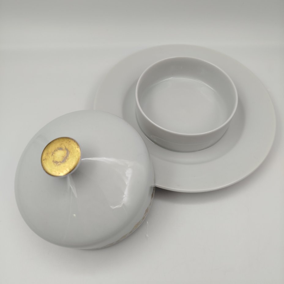 Набор из масленки, шести блюдец и шести розеток с геометрическим декором, фарфор, деколь, золочение, Lichte Porzellan (Лихте), Германия, 1966-1985 гг.