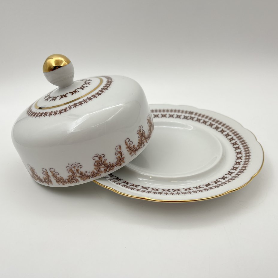 Маслёнка с золотистым узором, фарфор, золочение, Colditz (Кольдиц), ГДР, 1970-1980 гг.