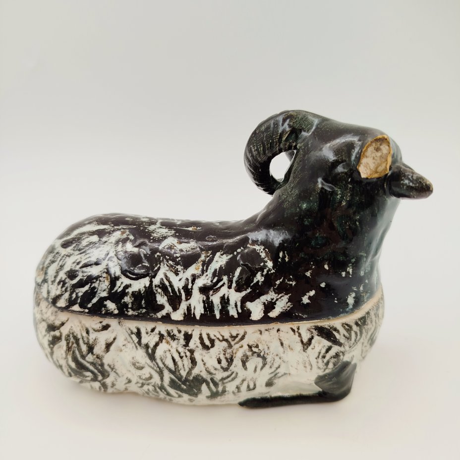Маслёнка "Баран", фаянс, роспись, Товарищество М.С. Кузнецова, Российская империя, 1890-1917 гг.