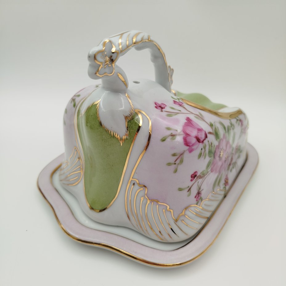 Масленка с цветочным декором, фарфор, деколь, золочение, Bohemia (Neurohlau), Чехословакия, 1970-1990 гг.